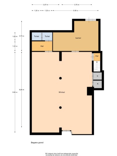 De ruimte heeft een totaal oppervlak van ca. 170,8 m² v.v.o. en is als volgt verdeeld: