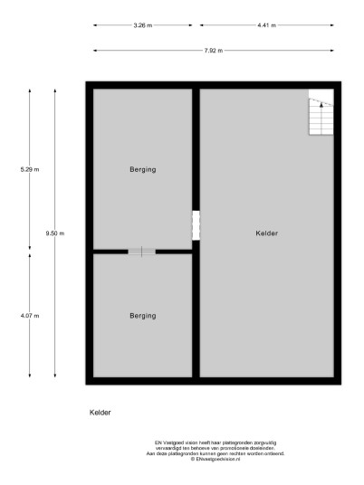 - Kelder: ca. 80 m² v.v.o. met een stahoogte van ca. 1,90 meter.