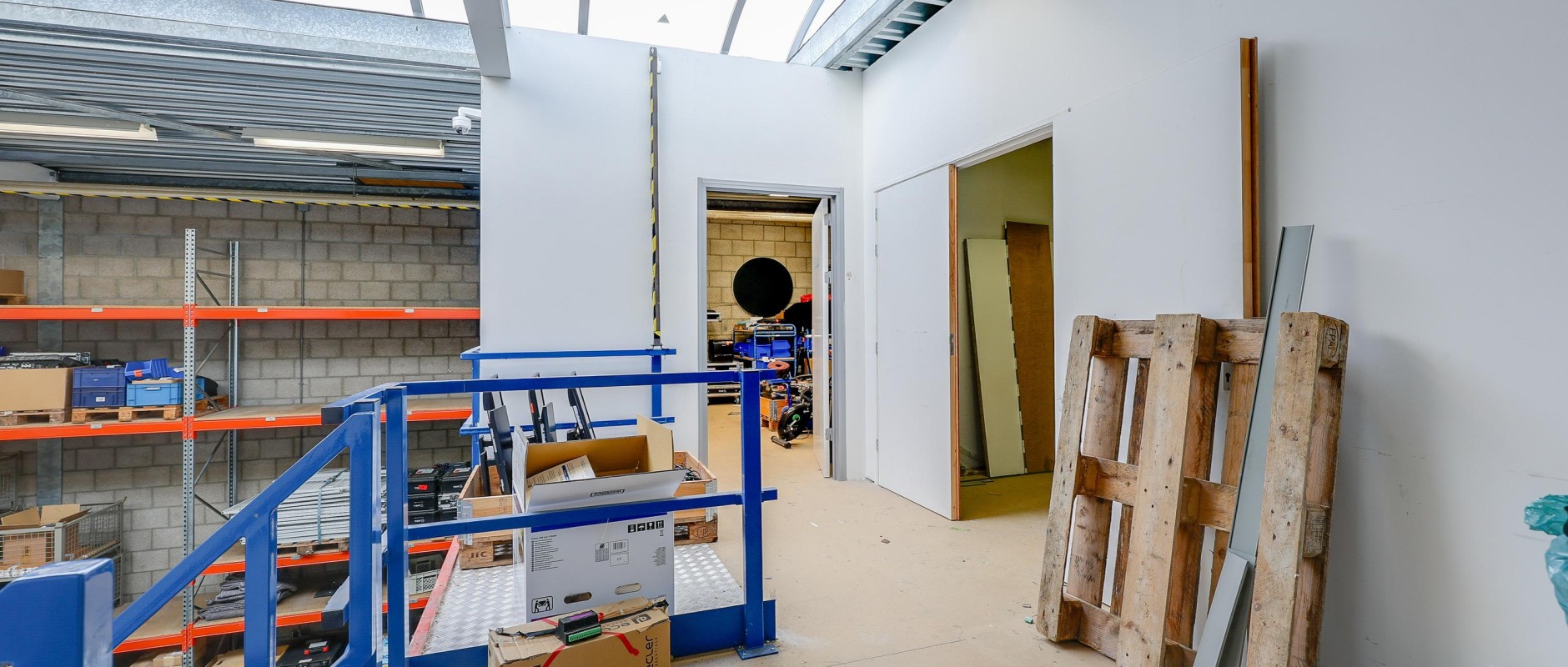 - Afgewerkte betonvloer (vrije doorrijhoogte van circa 4 meter);