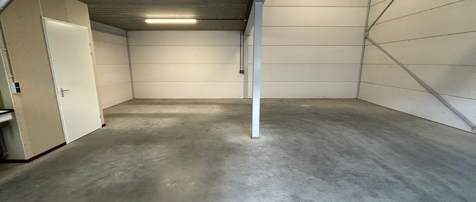 Deze moderne bedrijfsruimte bestaat uit een bedrijfshal met een vloeroppervlakte van ca. 90m² op de begane grond en een betonnen verdiepingsvloer van ca. 45m². Het perceel biedt voldoende parkeerplaatsen.