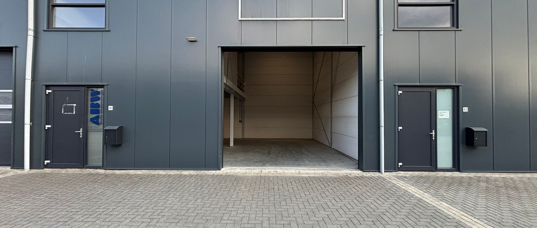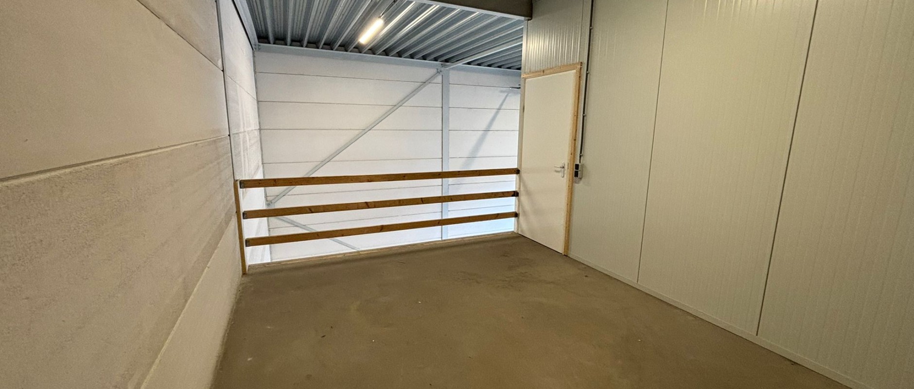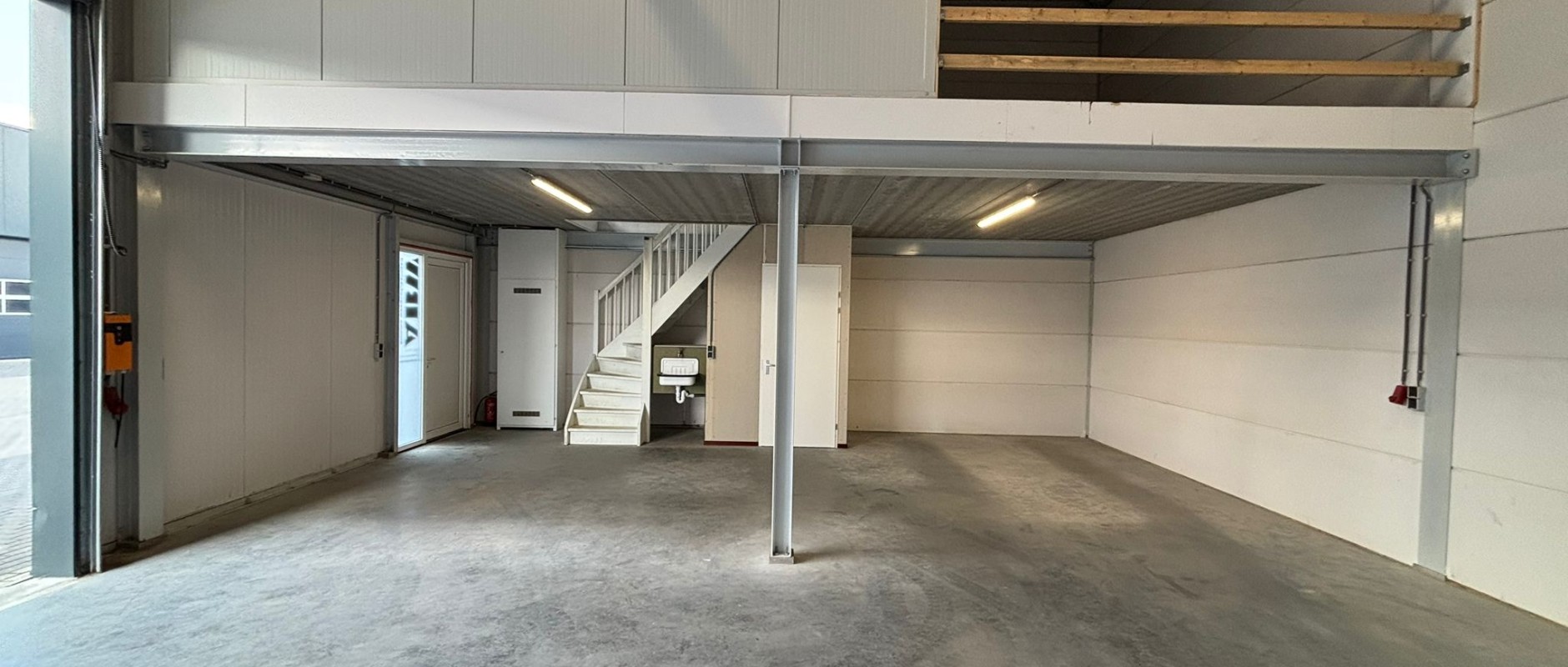 De bedrijfsruimte is goed afgewerkt, volledig geïsoleerd en voorzien van een elektrische overheaddeur alsmede van een loopdeur. Het magazijn heeft voor een deel volledige hoogte, ideaal voor opslag.