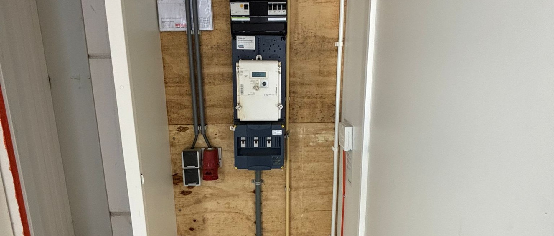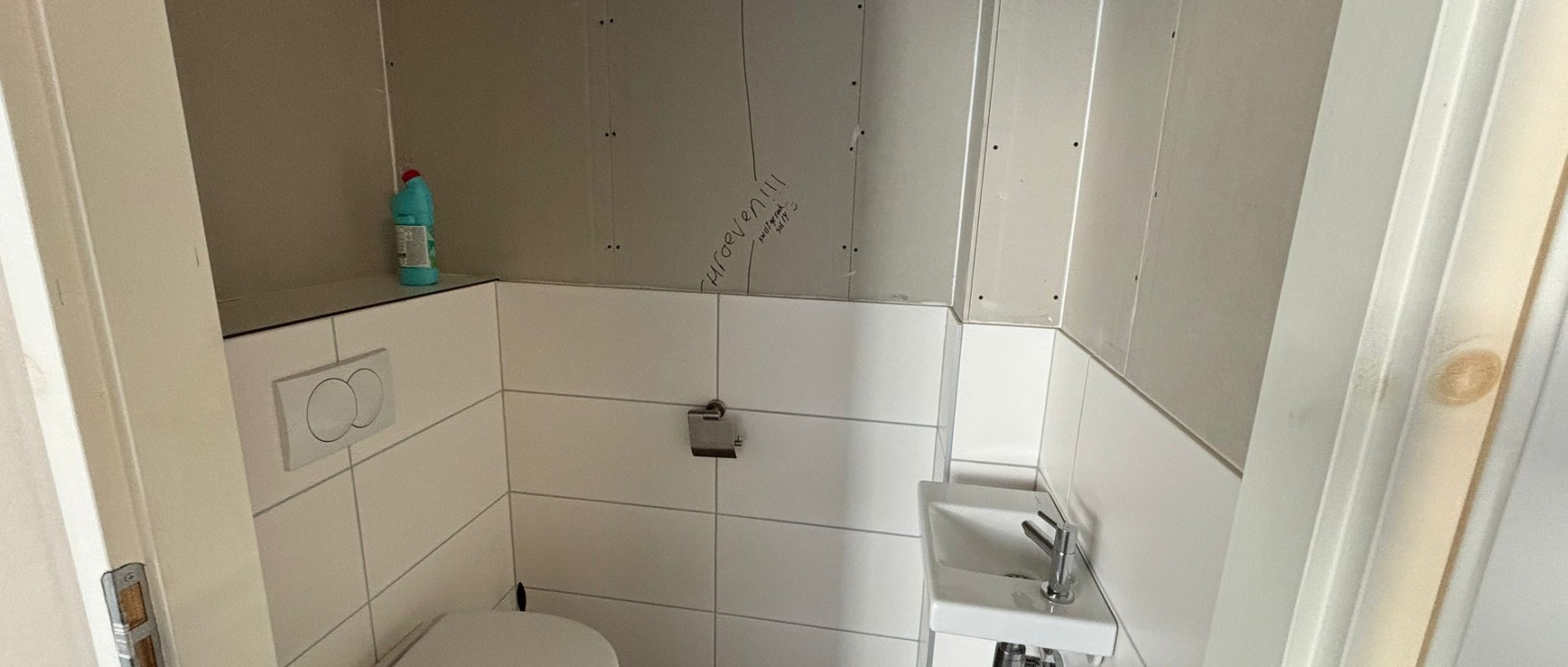 Lees verderDe helft heeft een betonnen verdiepingsvloer, waaronder een toiletruimte, uitstortbak onder de trapopgang naar de verdieping en een meterkast met o.a. krachtstroom en glasvezel.