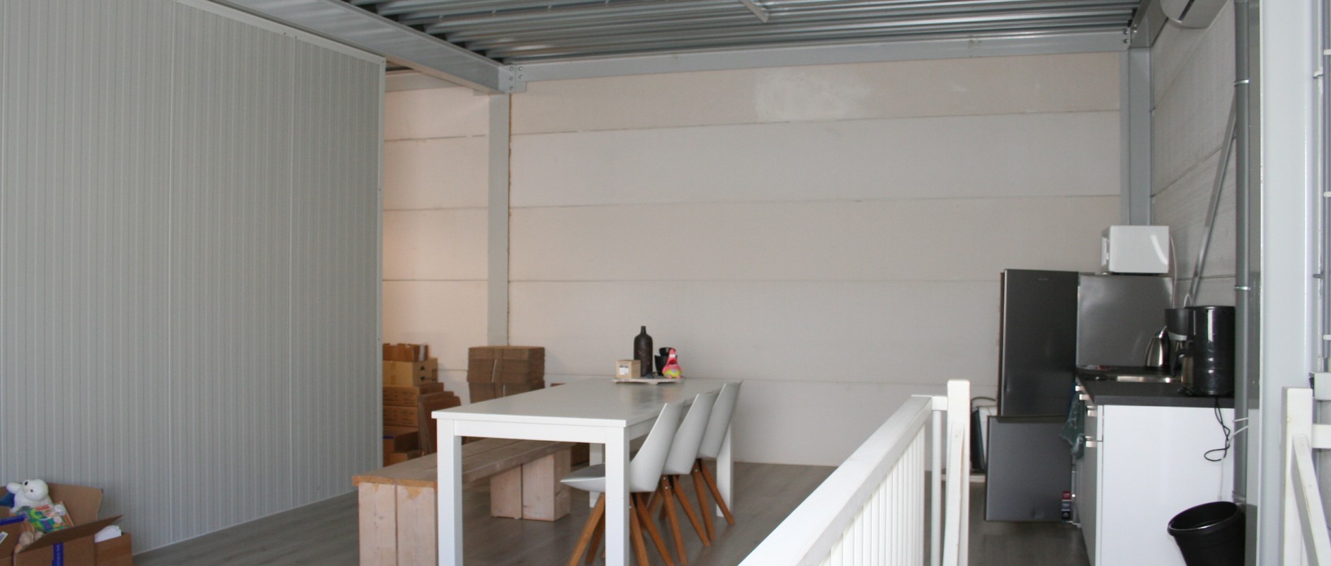De bedrijfsruimte is uitstekend afgewerkt, volledig geïsoleerd en voorzien van een overheaddeur alsmede van een loopdeur. Het magazijn heeft voor een deel volledige hoogte, ideaal voor opslag.