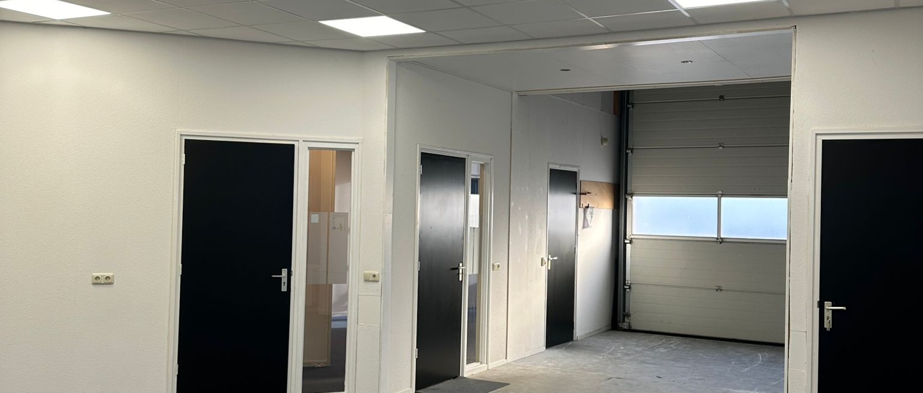 Een loopdeur geeft toegang tot de algemene entree. Vanuit de ontvangsthal zijn de diverse kantoorruimten bereikbaar. De bedrijfshal is eveneens vanuit de ontvangsthal bereikbaar en beschikt tevens over een overheaddeur.