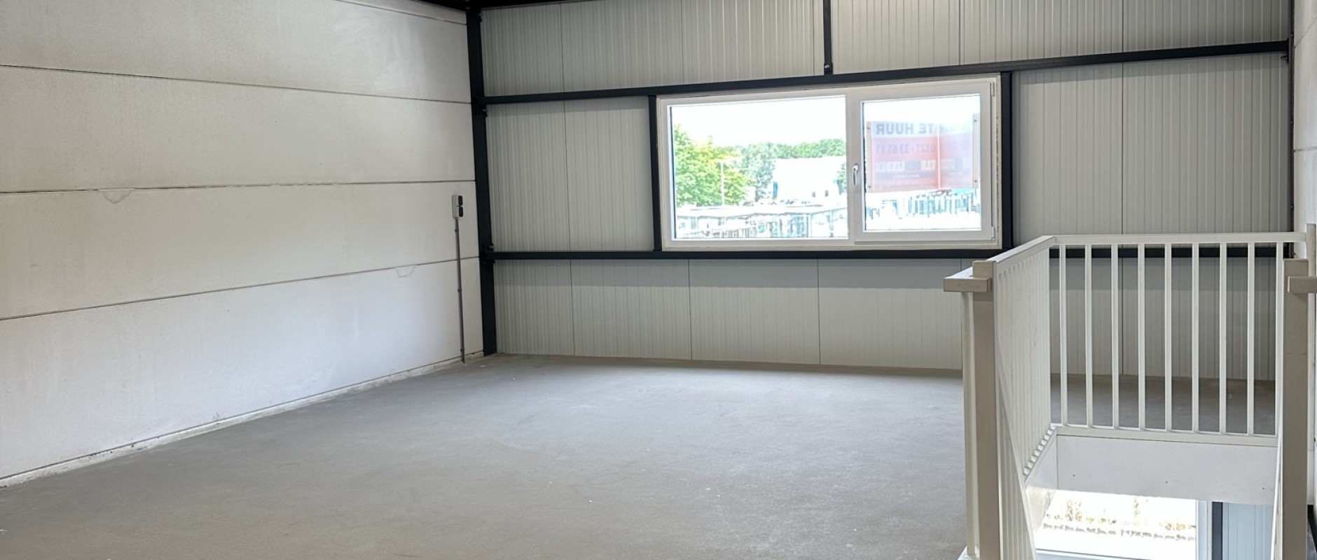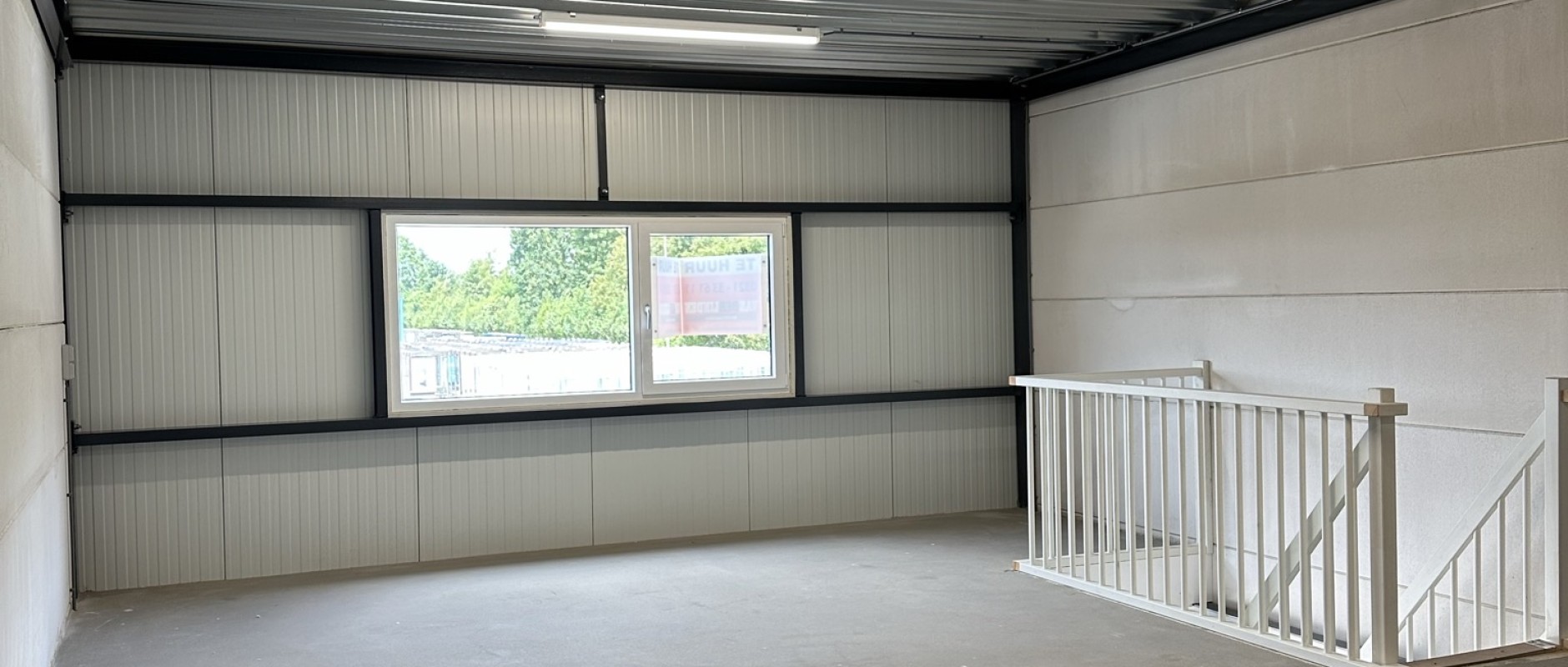 De unit heeft een bruto vloeroppervlak van 103m², waarvan de begane grond circa 51m² bedrijfsruimte biedt. Op de etage met betonvloer is de mogelijkheid om een kantoorruimte te realiseren of tevens als bedrijfsruimte te gebruiken.