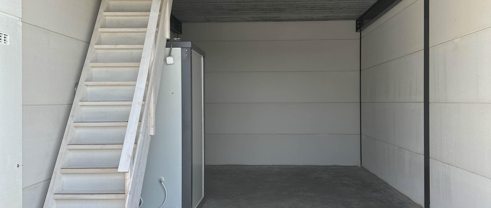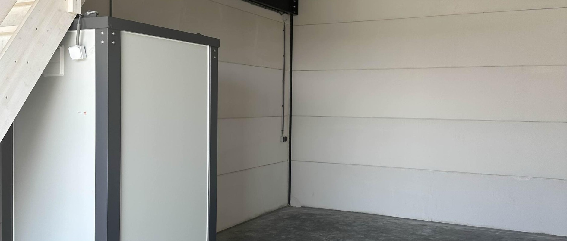 De unit heeft een bruto vloeroppervlak van 61m², waarvan de begane grond 40,5m² bedrijfsruimte biedt. Op de etage met betonvloer is de mogelijkheid om een kantoorruimte te realiseren of tevens als bedrijfsruimte te gebruiken.