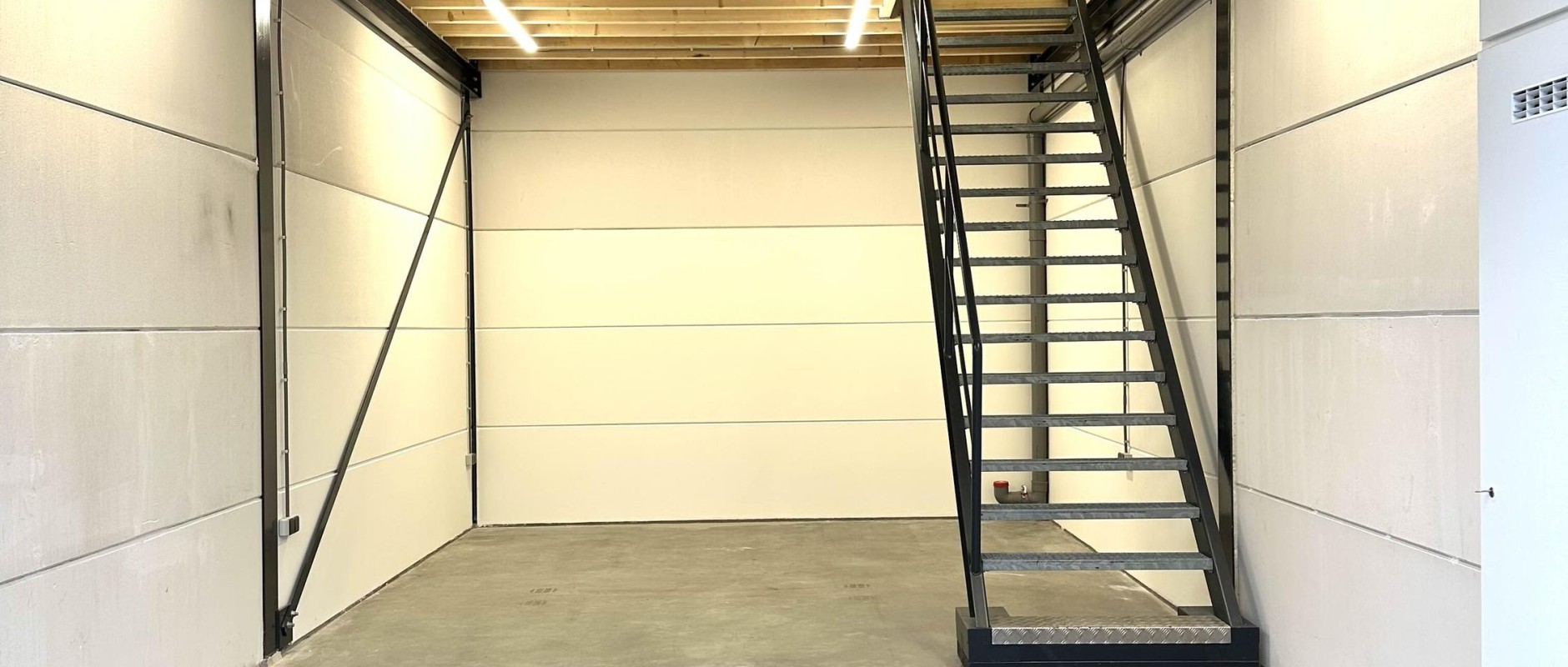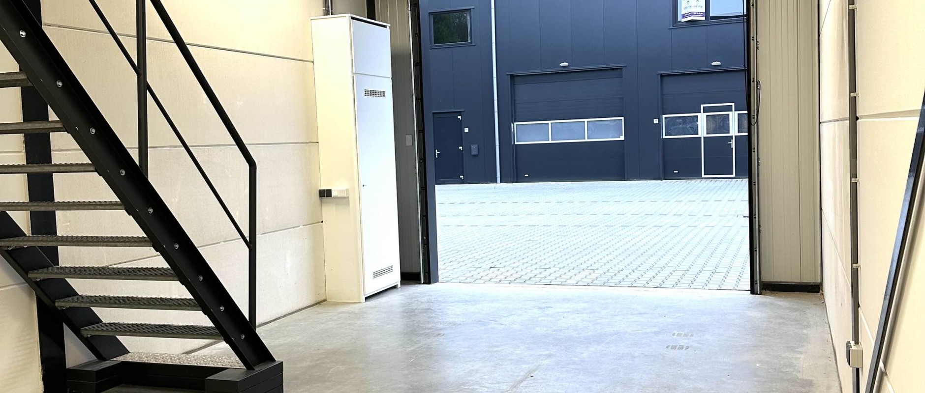 - bedrijfshal met trapopgang en meterkast