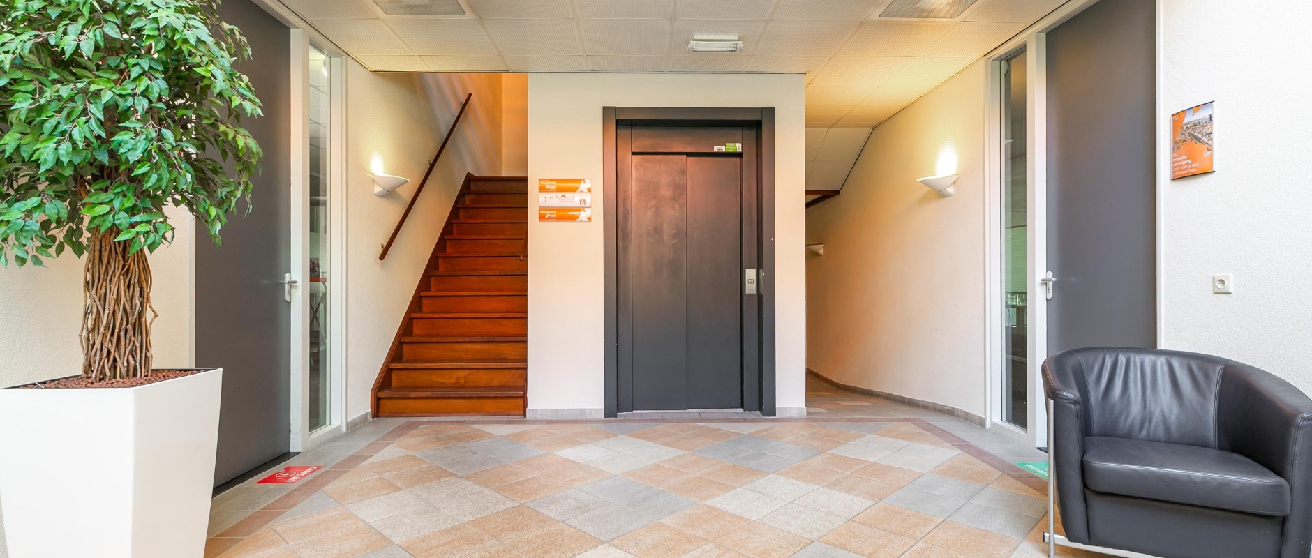 De toegang tot het gebouw verloopt via een afgesloten entree. De achterliggende hal, voorzien van een fraaie vide en hoogwaardige wand- en vloerafwerking, biedt toegang tot de lift en de trapopgang.