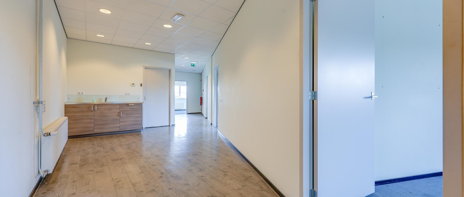 - Kantoorruimtes zijn ingedeeld en afgewerkt;