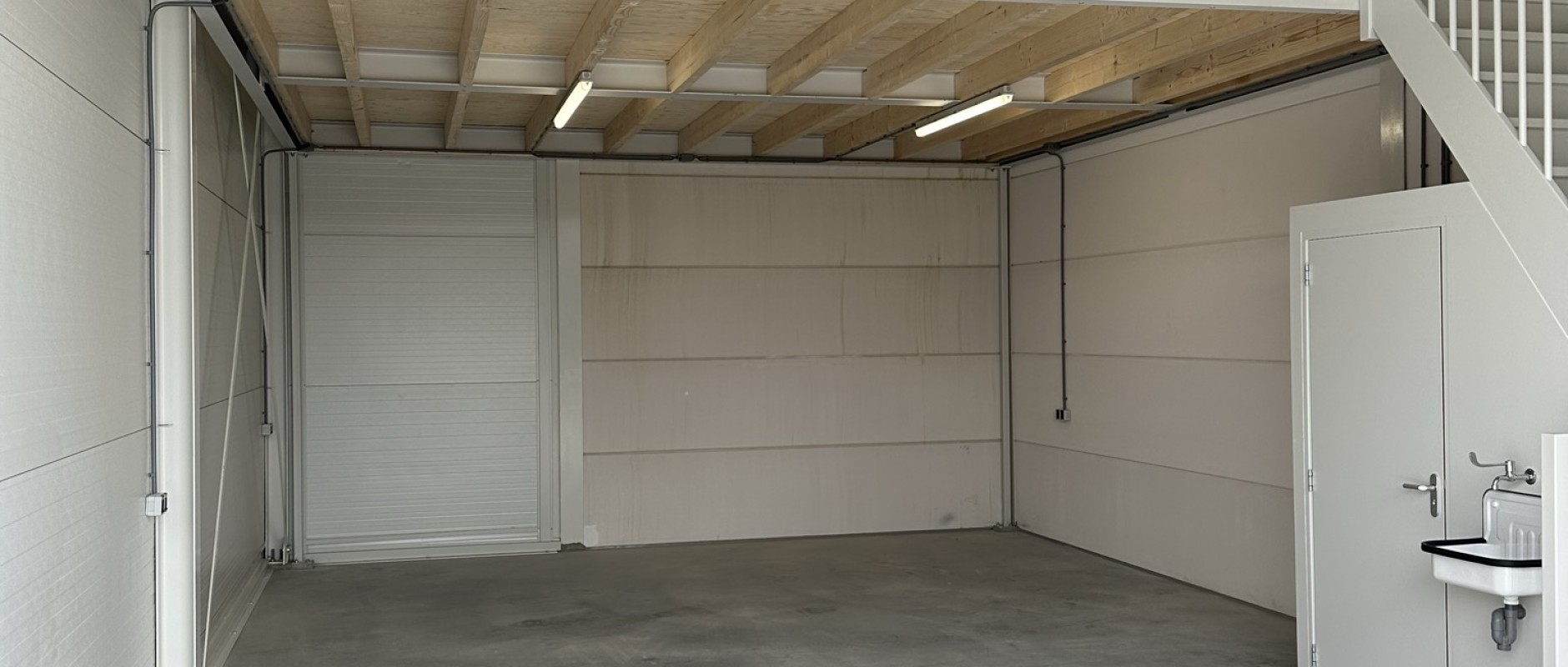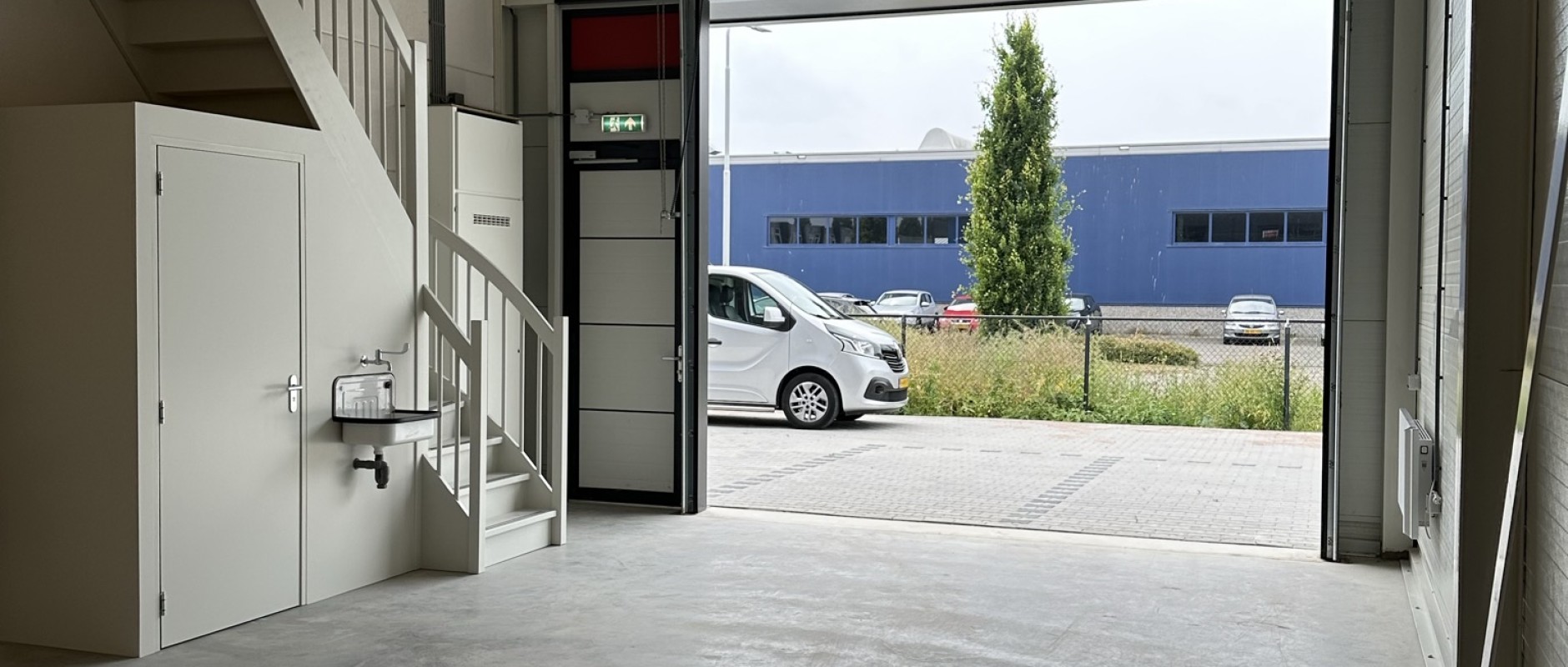 De bedrijfsruimte is toegankelijk middels een elektrische overheaddeur en een separate loopdeur. De bedrijfsruimte beschikt over een keurige toiletruimte en spoelbak. De kantoorruimte op de verdieping is vanuit de hal met trapopgang bereikbaar.