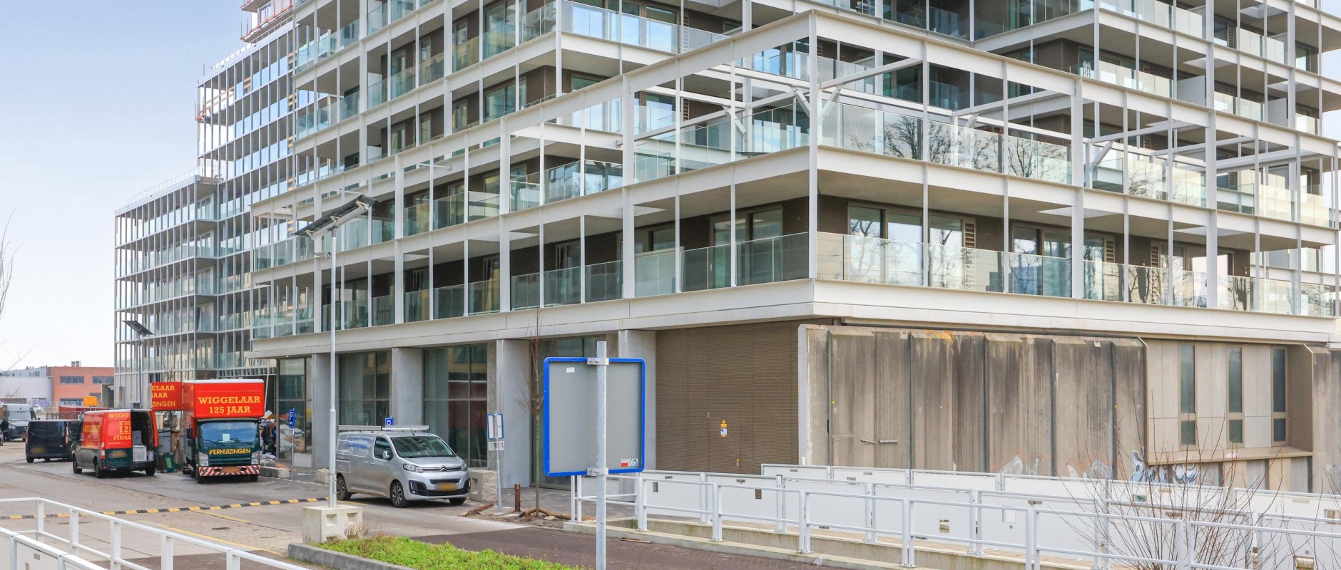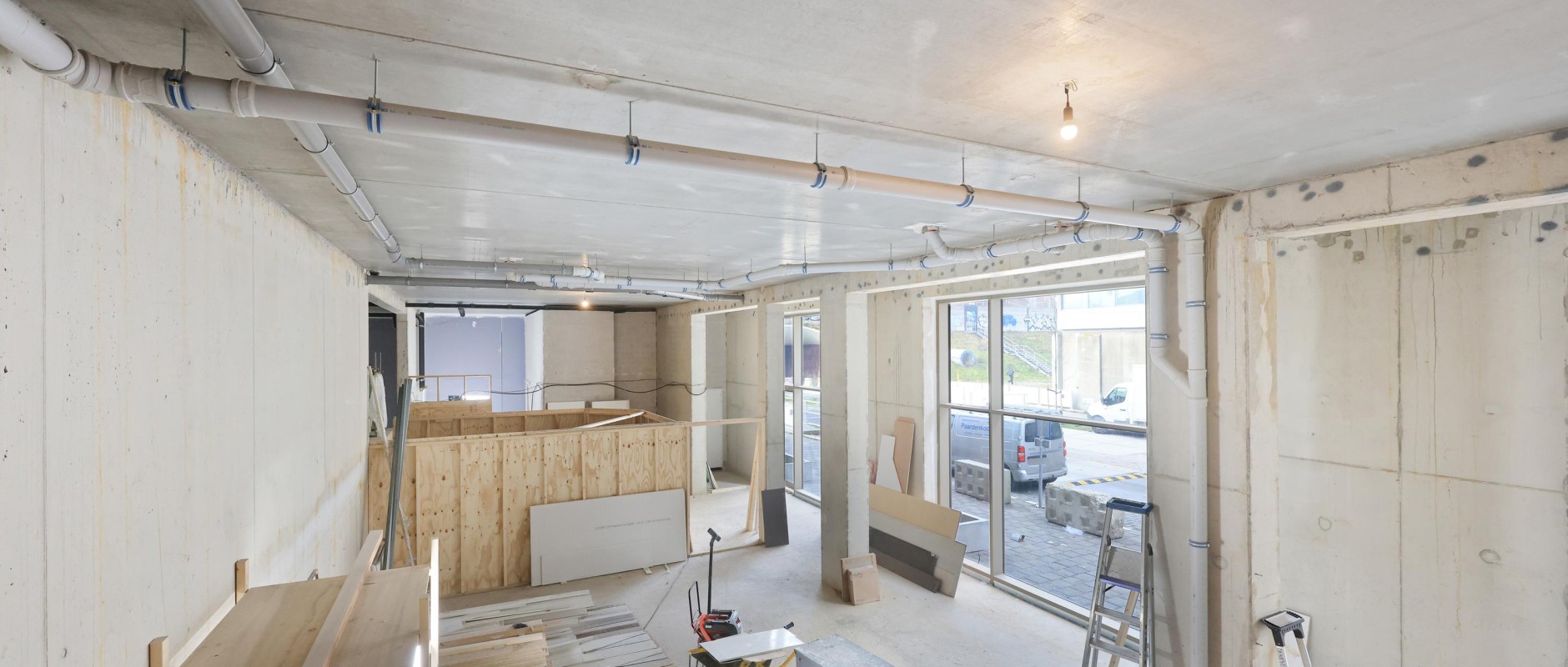 De ruimte onderscheidt zich door de hoge glaspuien van maar liefst 5 meter, wat zorgt voor een uitzonderlijke hoeveelheid daglicht en een hoogwaardige uitstraling. De unit ligt direct aan het centrale plein én aan de toegangsweg tot het gebied, wat zorgt voor uitstekende zichtbaarheid en vindbaarheid.