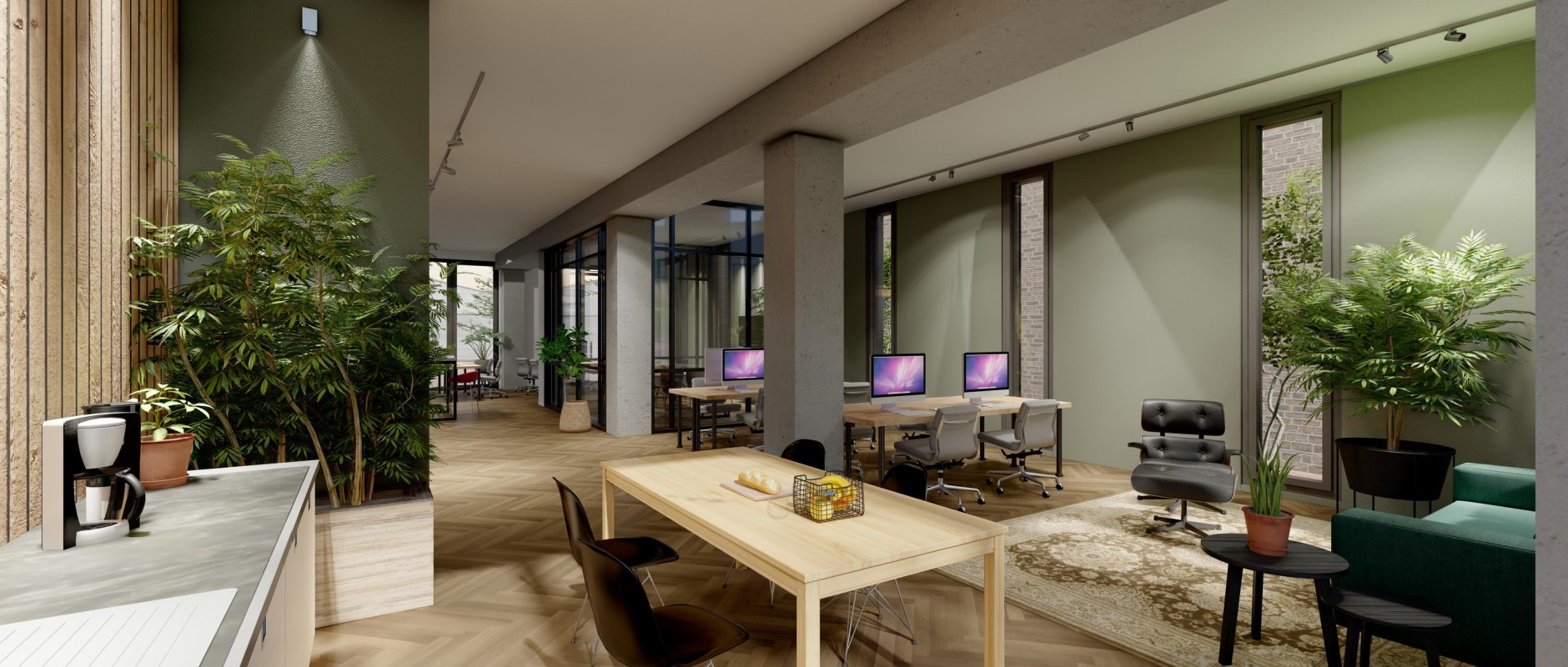 De kantoorruimte is gelegen op de begane grond van het gebouw Timberhouse aan de Distelweg.