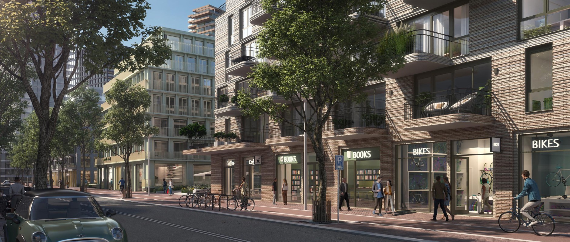 De Docklandsweg moet een gezellige en praktische winkelstraat worden met een ontspannen sfeer.