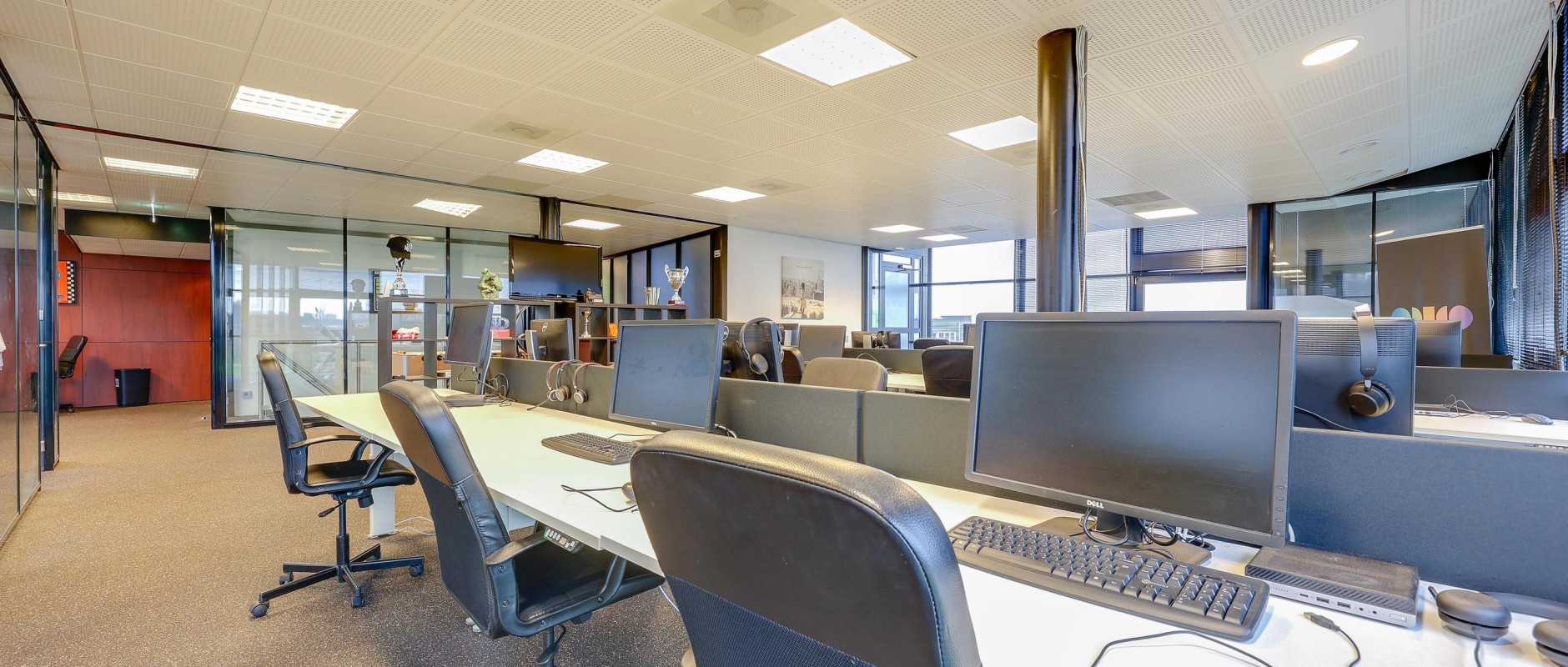 - Flexibele indeling: meerdere werk- en vergaderruimtes, ontvangstruimte en eventueel showroom.