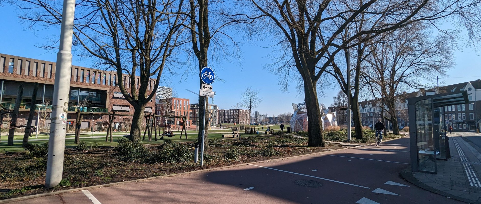 Per OV; tram-, en bushalte zijn op loopafstand.