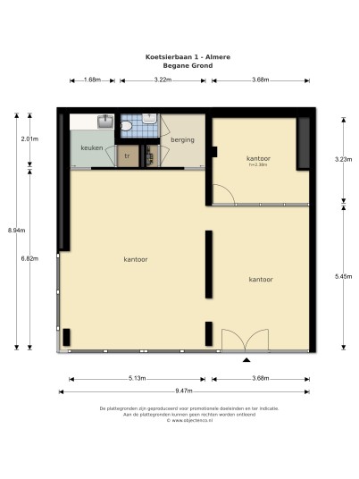 Het betreft een mooie en goed ingedeelde kantoorruimte. Het object heeft een eigen entree op de begane grond. De ruimte is thans als kantoorruimte in gebruik.