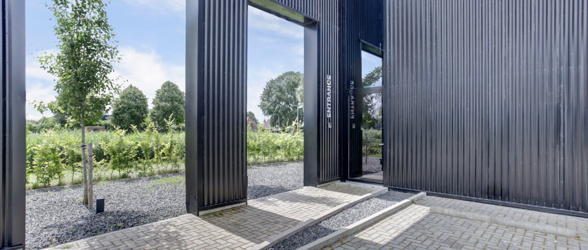 De bedrijfsruimte is toegankelijk middels een elektrische overheaddeur en een separate loopdeur en beschikt over de nodige stellingplaatsen. De kantoorruimte is middels een fraai entree bereikbaar alsmede vanuit de hal intern bereikbaar. Het gehele pand is duurzaam en gas-loos gebouwd waarbij de meterkast aansluitingen voor water en elektriciteit (3 x 40A) biedt. Het pand wordt met vloerverwarming verwarmd middels een warmtepomp gecombineerd met een elektrische boiler en 40 zonnepanelen.