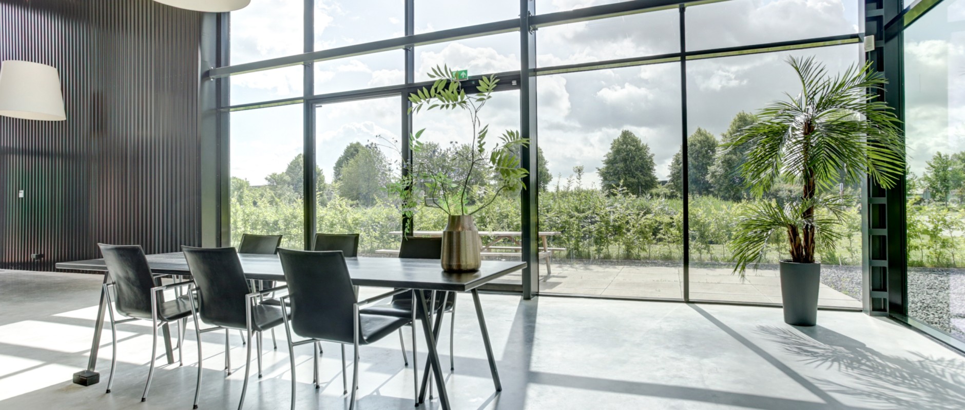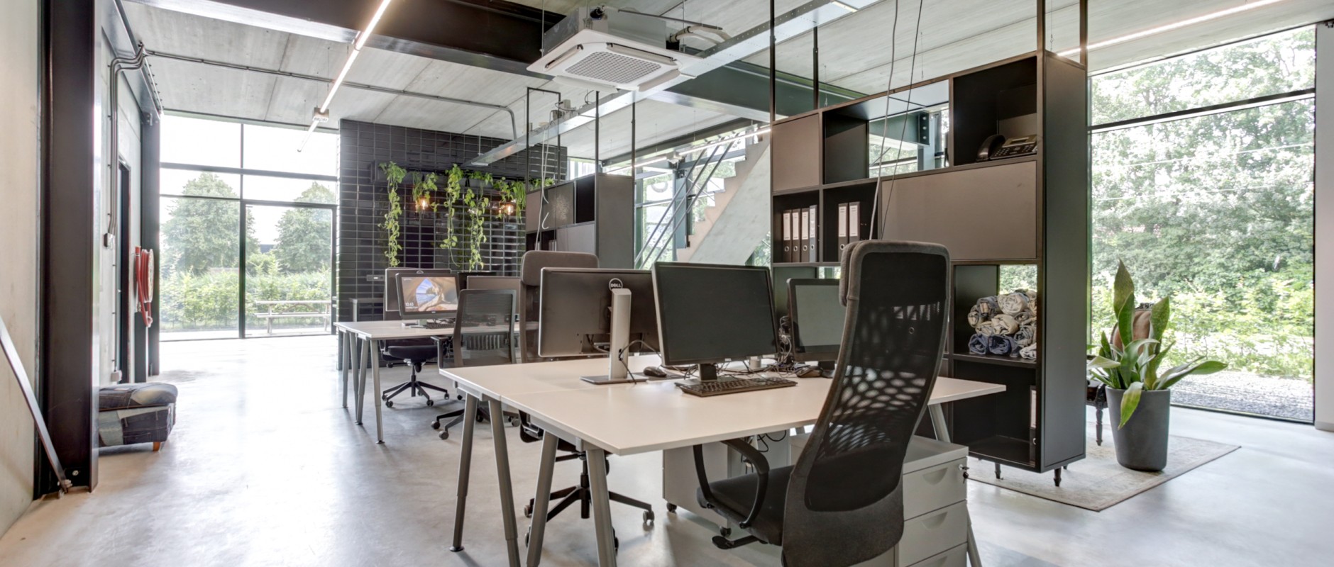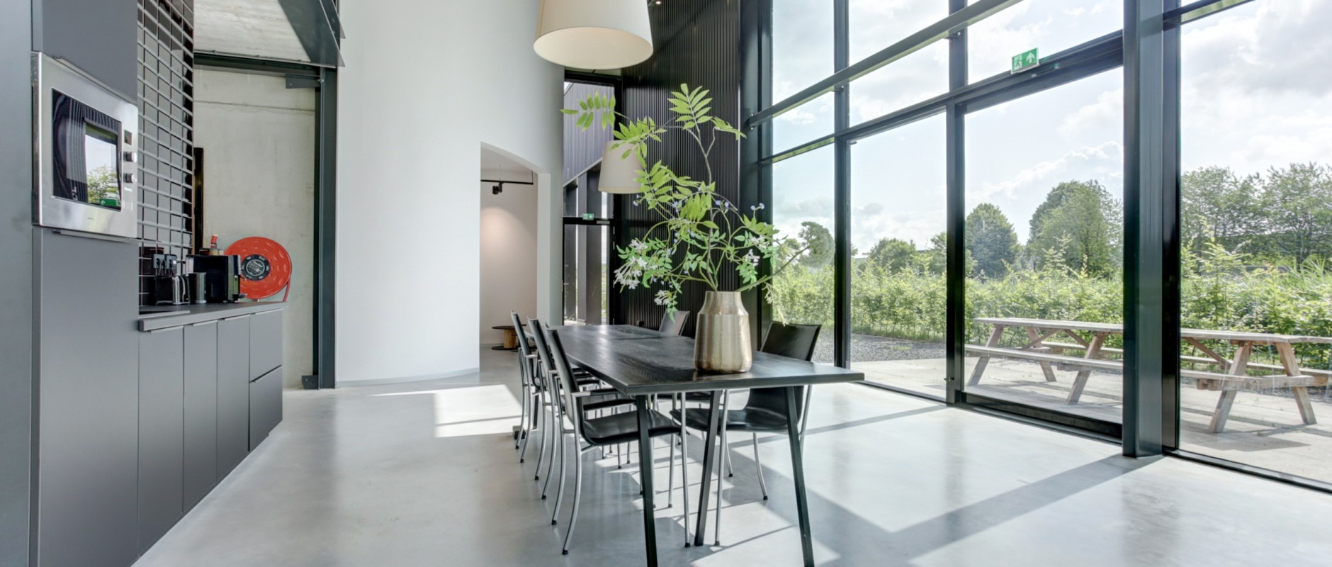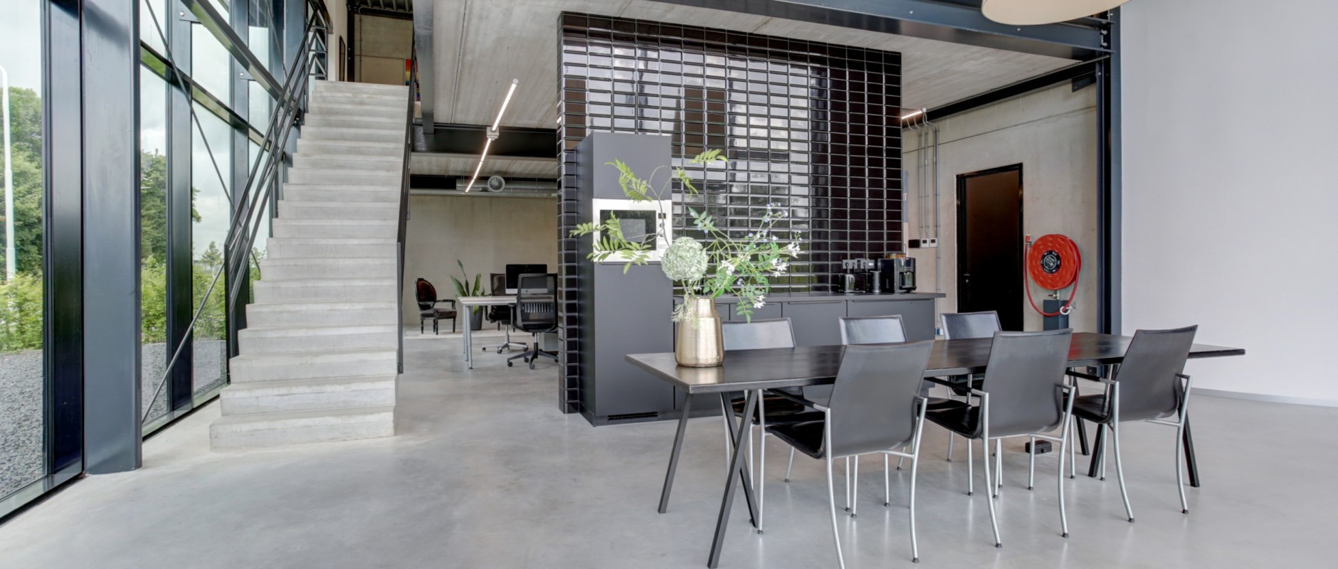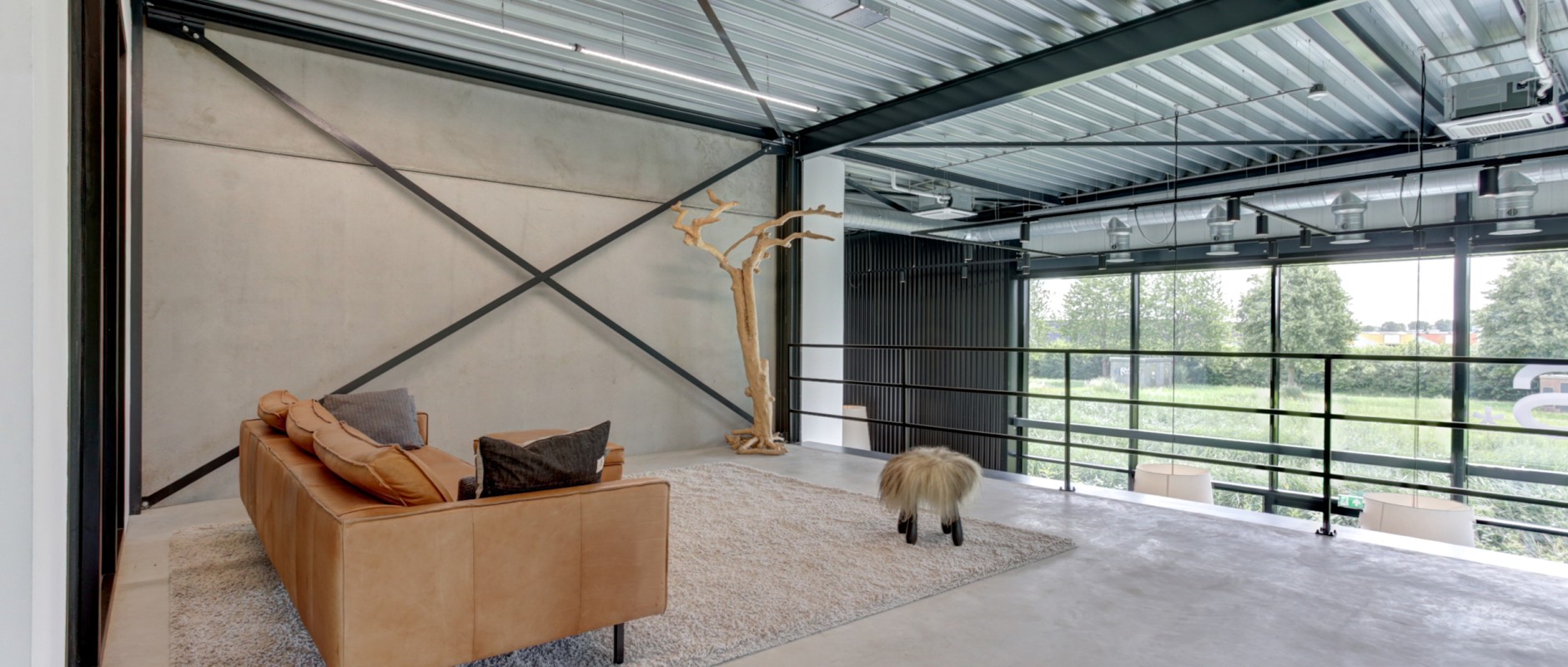 Lees verderDe etage in de kantoorruimte geeft mede door de vide en glaspanelen een mooie vrij uitzicht op de werkruimte en achtergelegen groen.