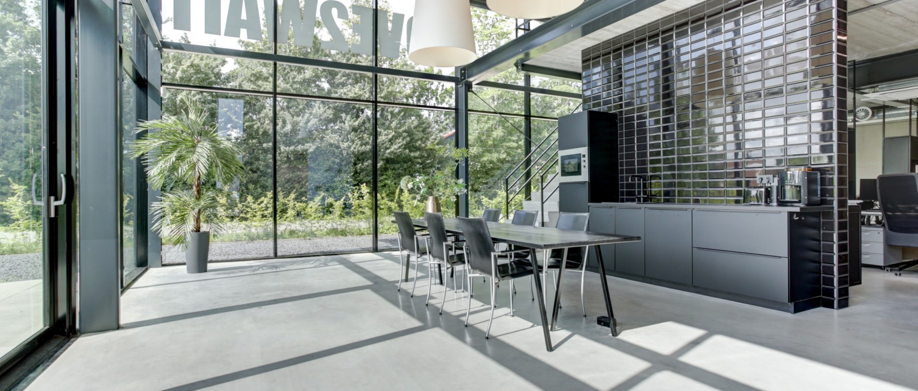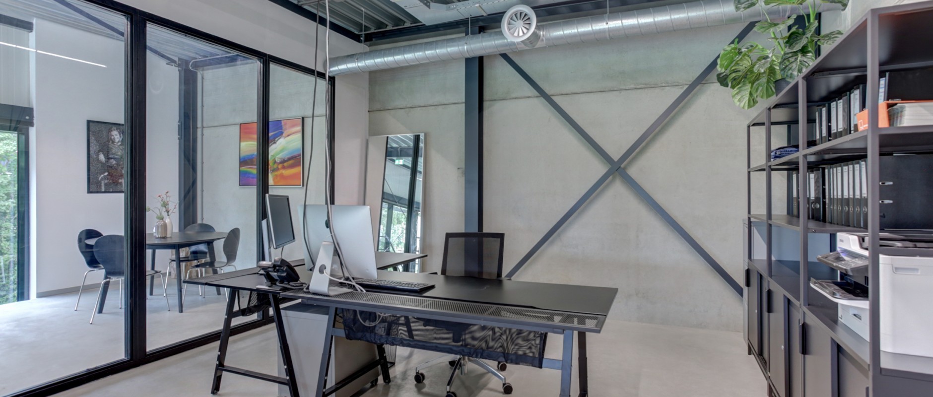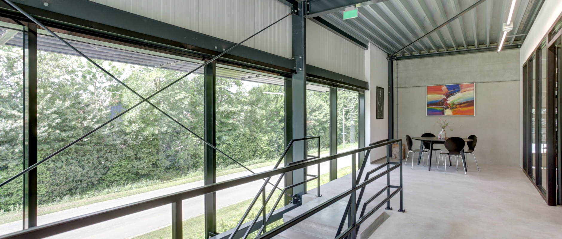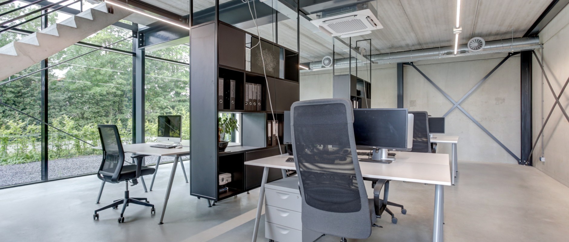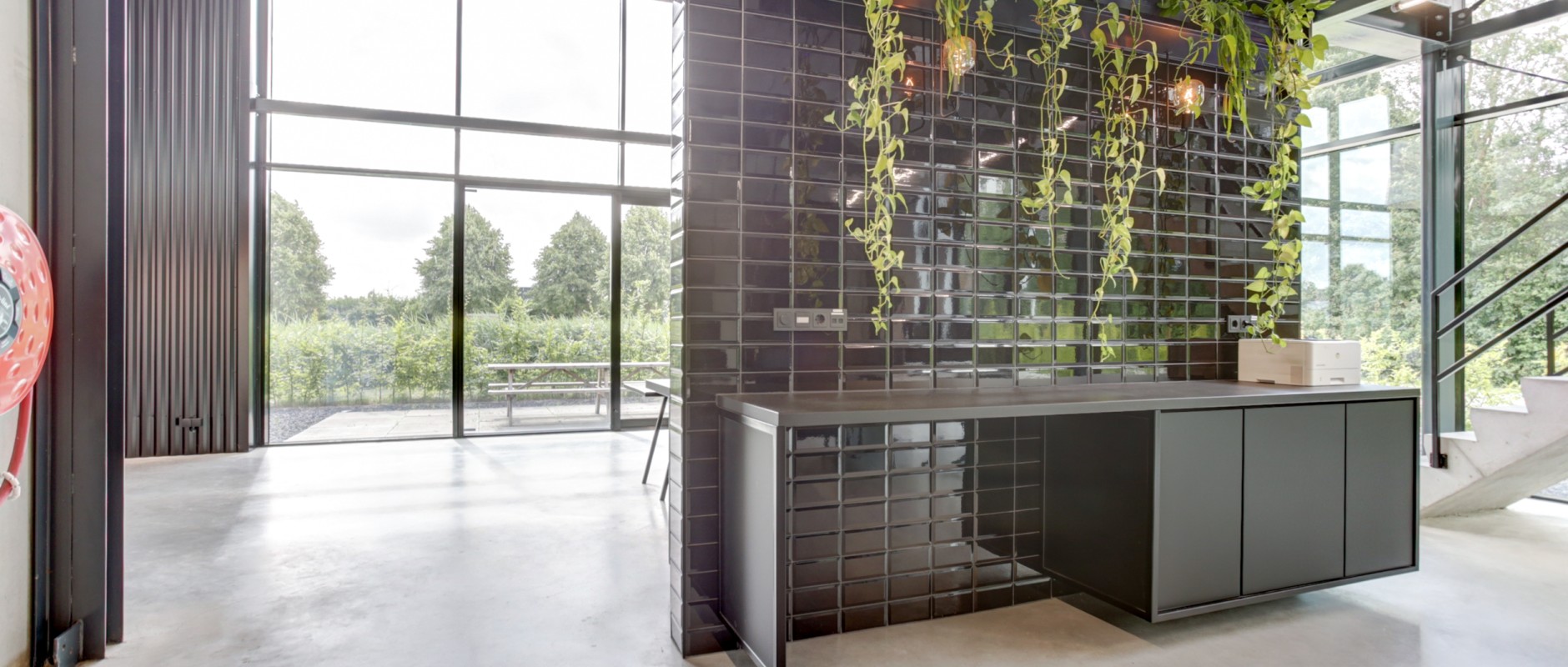 Lees verderDe etage in de kantoorruimte geeft mede door de vide en glaspanelen een mooie vrij uitzicht op de werkruimte en achtergelegen groen.
