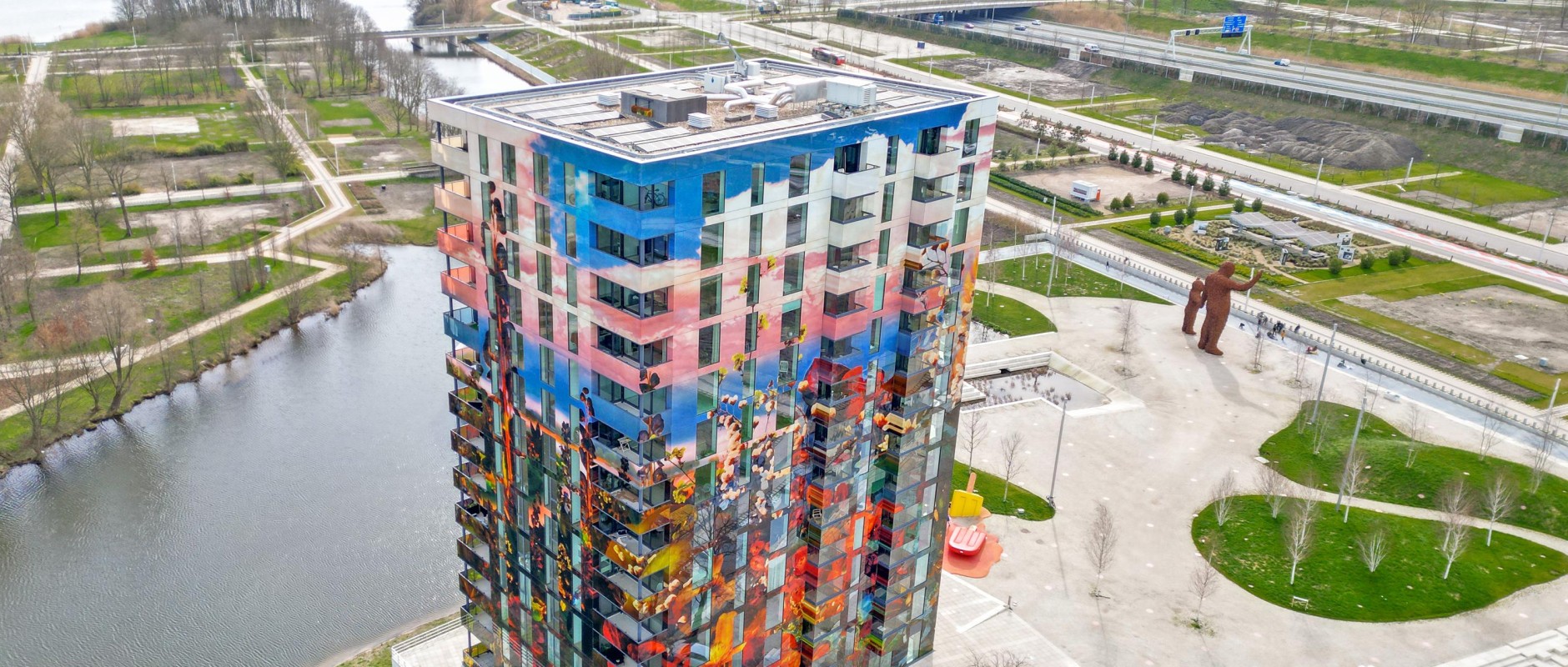 Deze woontoren staat in de nieuwe groene stadswijk Hortus, op het voormalige Floriade terrein in Almere. Na Floriade Expo 2022 is het gebouw Flores het eerste woongebouw in deze aankomende aantrekkelijke woonwijk. Het project “Hortus” is al vanaf het begin rijk aan bomen, planten en bloemen door gebruik te maken van het arboretum dat de kavels omzoomt. Zo krijgt de wijk een overweldigend groen karakter. Alle bomen en planten dragen bij aan een gezonde groene stad. Hortus verrijst tegenover het stadscentrum van Almere, op de eilanden aan de andere kant van het Weerwater. Deze eilanden zijn ontstaan door het opnieuw afgraven van de drooggelegde zeekleibodem voor de ophoging van de woonwijken in Almere Stad.