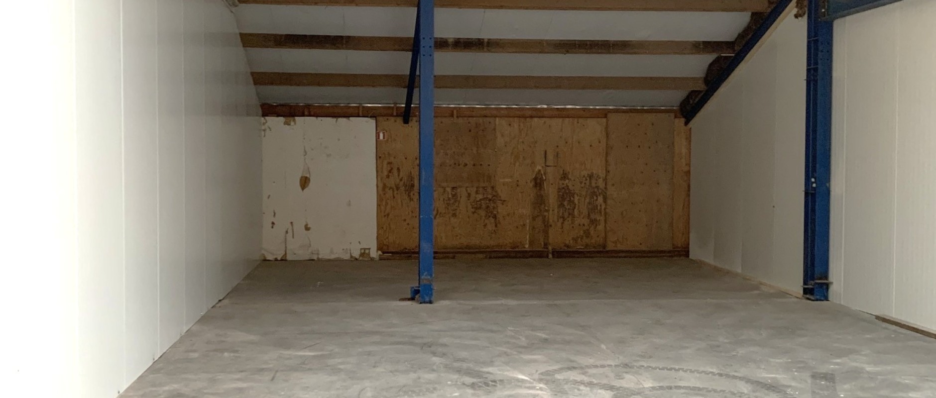 Stalen constructie, betonvloer op zandbed gestort (monoliet afgewerkt, vloeistofdicht), geïsoleerde gevelbeplating sandwichpaneel, stalen dak met zonepanelen, volledig geïsoleerd, bestraat en omheind buitenterrein.