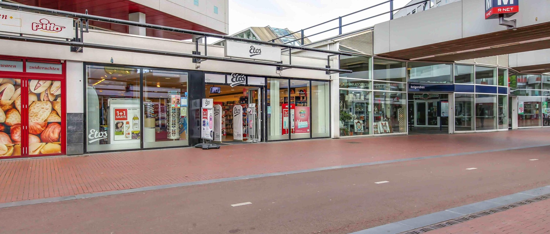 In het winkelcentrum zijn 65 winkelruimtes gevestigd, verdeeld over ca. 12.500 m². Diverse grootwinkelbedrijven zoals Jumbo, Zeeman, Blokker, Bruna, Etos en Kruidvat zijn er gevestigd. Daarnaast opent in september 2019 Vomar een nieuwe winkel op de plek waar nu Boni is gevestigd. Tevens zijn er diverse lokale ondernemers met een mooie diversiteit aan speciaalzaken. Daarnaast is er een vestiging van de Openbare Bibliotheek Amsterdam en zijn er in het winkelcentrum diverse horeca en foodwinkels gevestigd. In de komende periode zullen de uitstraling en reclame-uitingen aangepast worden zodat Reigersbos weer klaar is voor de toekomst!