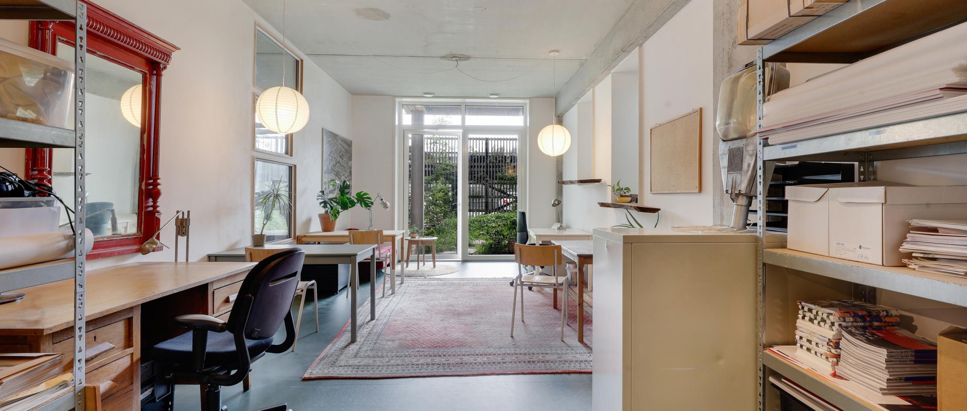 Prachtige kantoorruimte op de begane grond van circa 132 m² BVO met tuin en 2 parkeerplaatsen gelegen aan de Ridderspoorweg in Amsterdam Noord Buiksloterham.