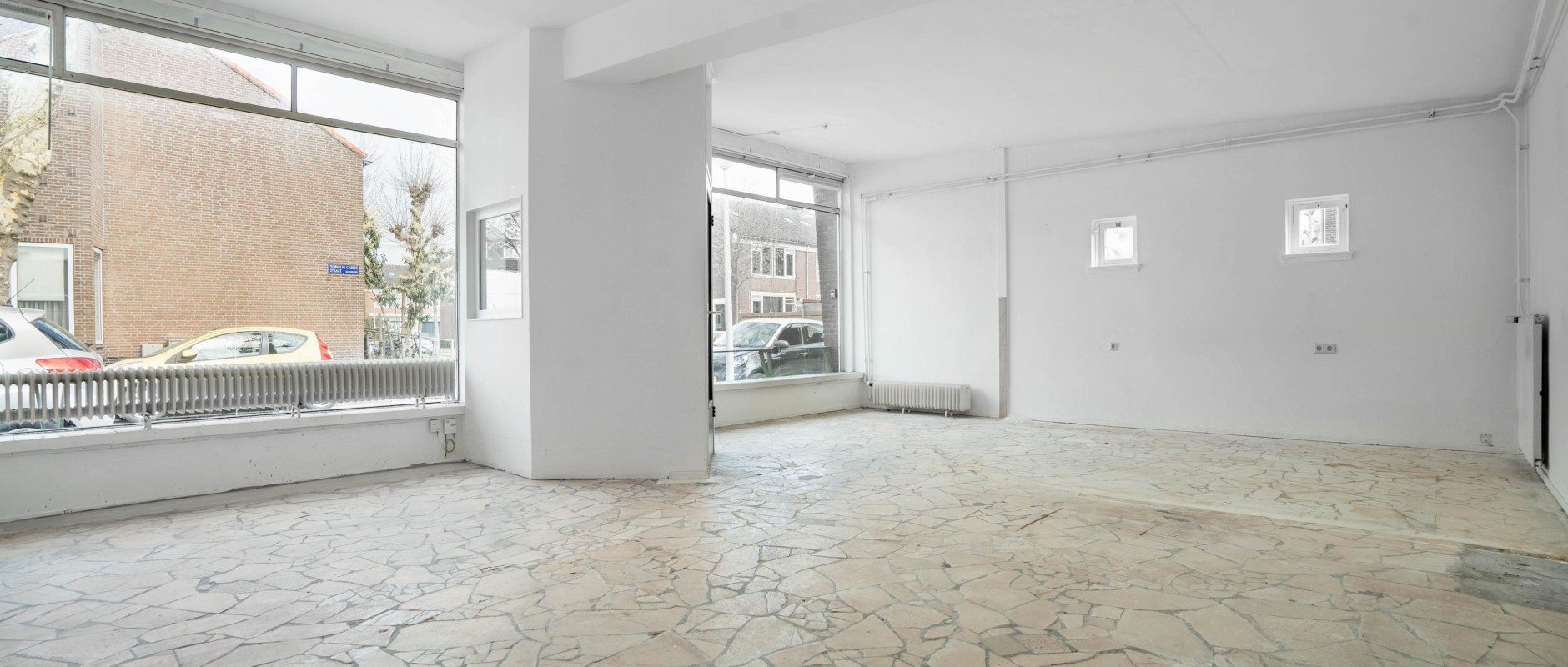 De kantoorruimte is gesitueerd in een woonomgeving in Geuzeveld/ Slotermeer.
