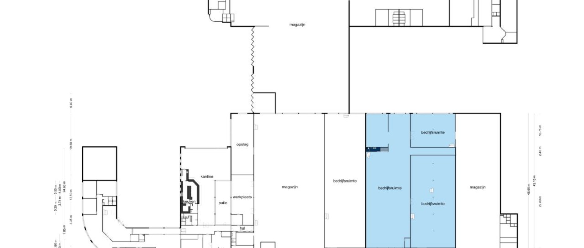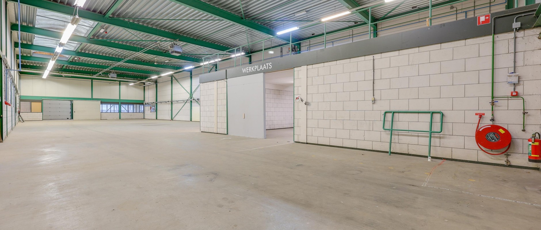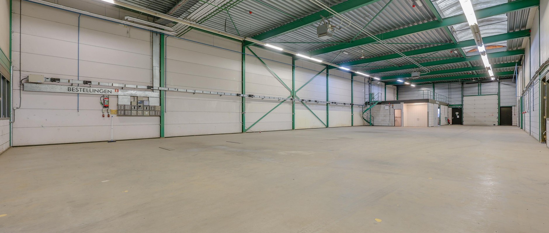 De te huren warehouse (rechts) bevindt zich op de begane grond en heeft een totale oppervlakte van circa 1. 403 m² bedrijfsruimte. De bedrijfsruimte is voorzien van 3 loading docks en 1 elektrische overheaddeur, wat de bereikbaarheid en het laden en lossen aanzienlijk vergemakkelijkt.