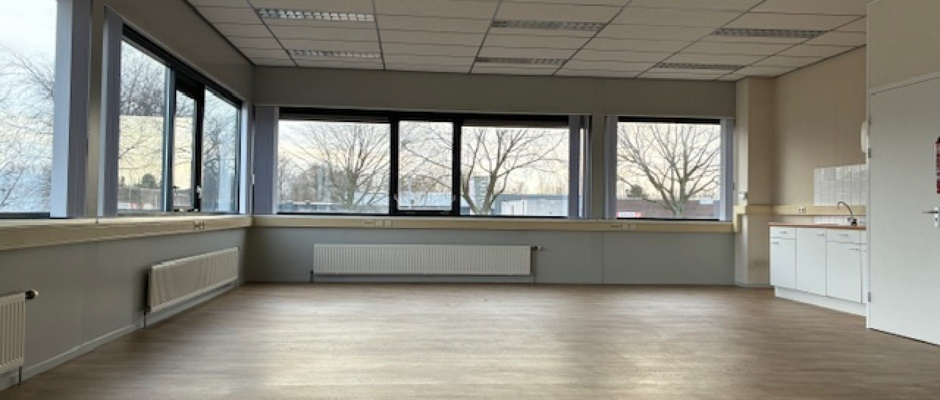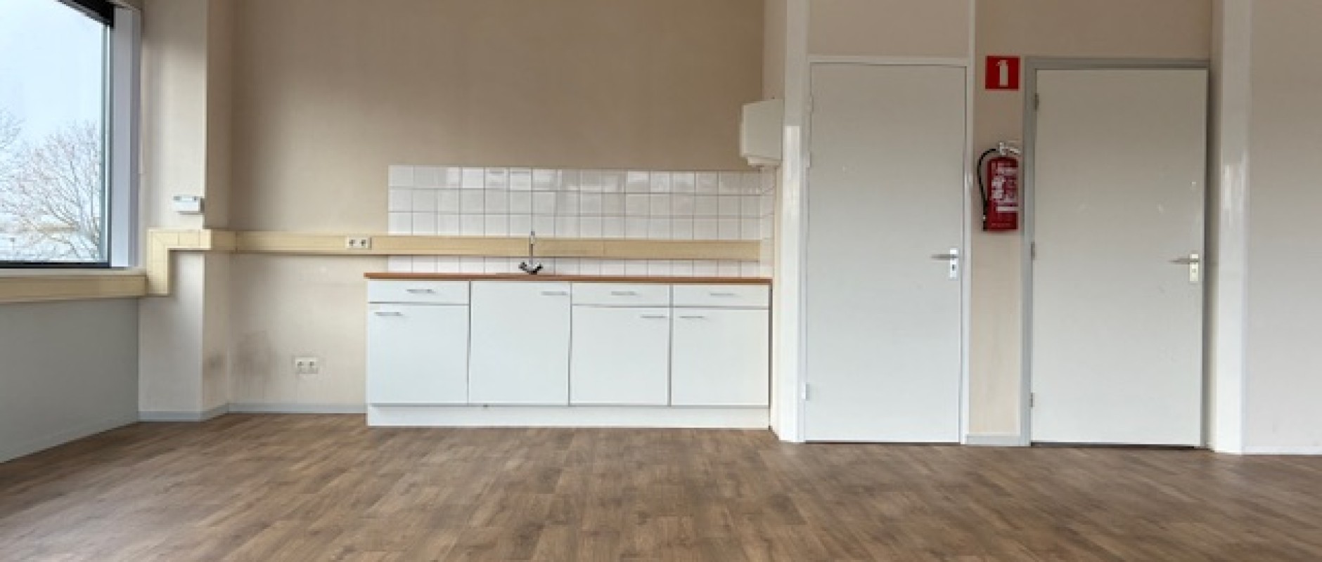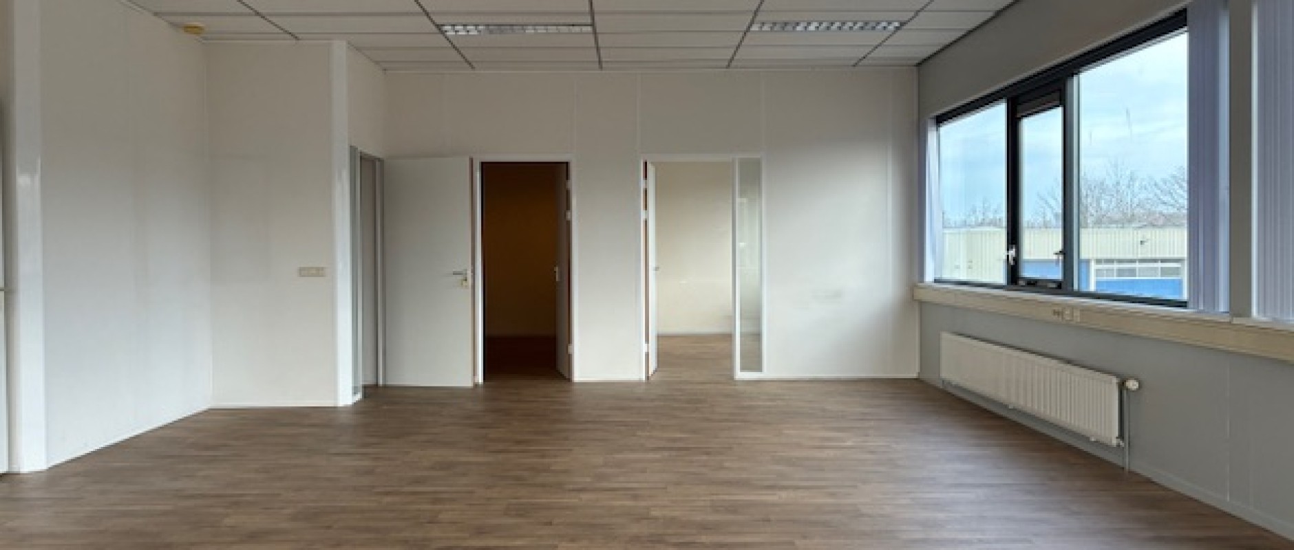 Circa 119 m² bedrijfsruimte op de begane grond en circa 100 m² kantoorruimte op de verdieping.