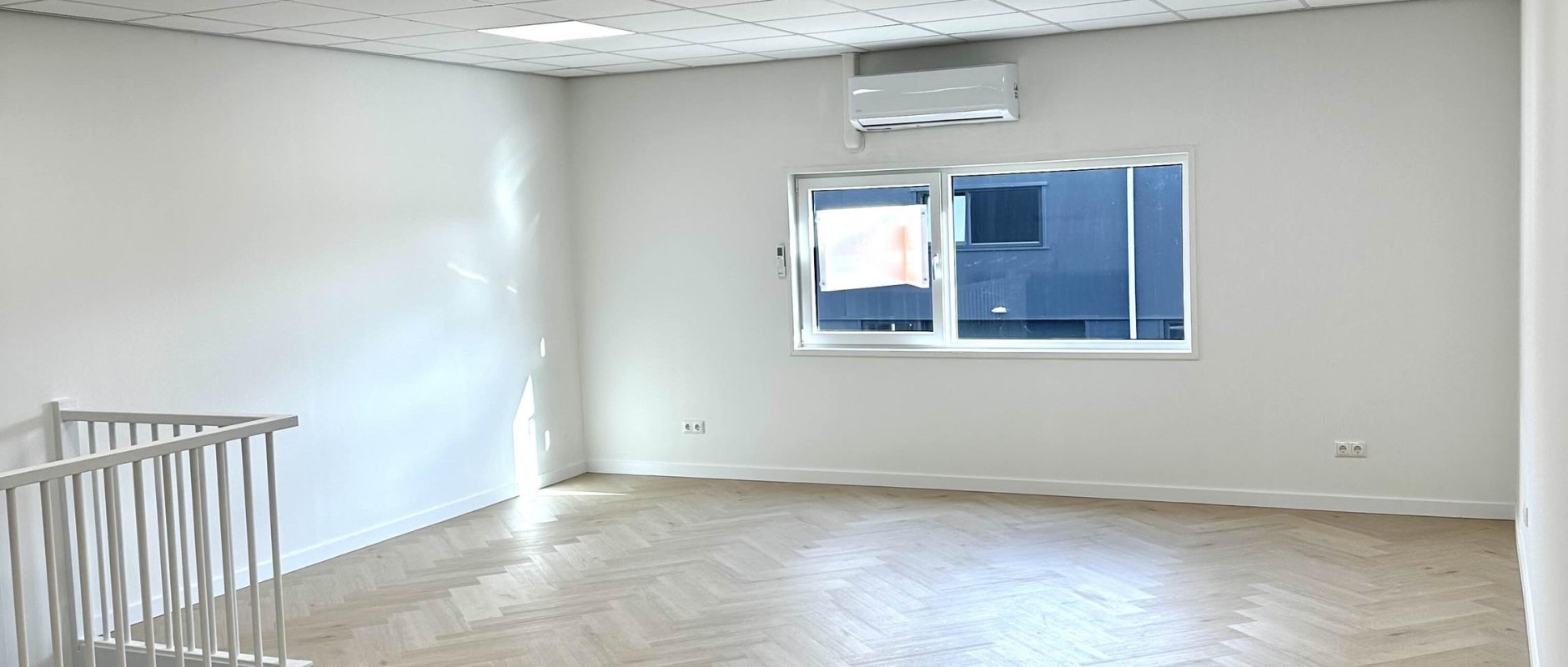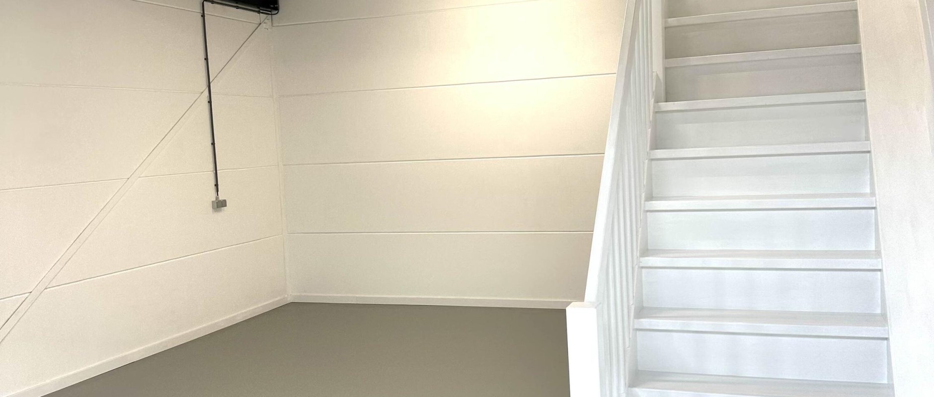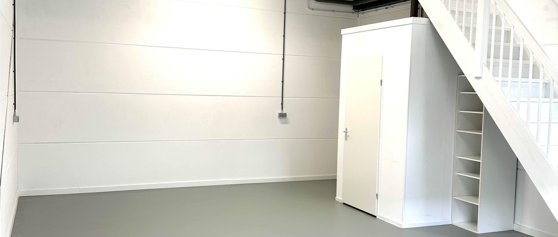 De unit heeft een bruto vloeroppervlak van 103m², waarvan de begane grond circa 51m² bedrijfsruimte biedt. Op de etage met betonvloer is een prachtige kantoorruimte gerealiseerd, welke tevens als bedrijfsruimte te gebruiken is.