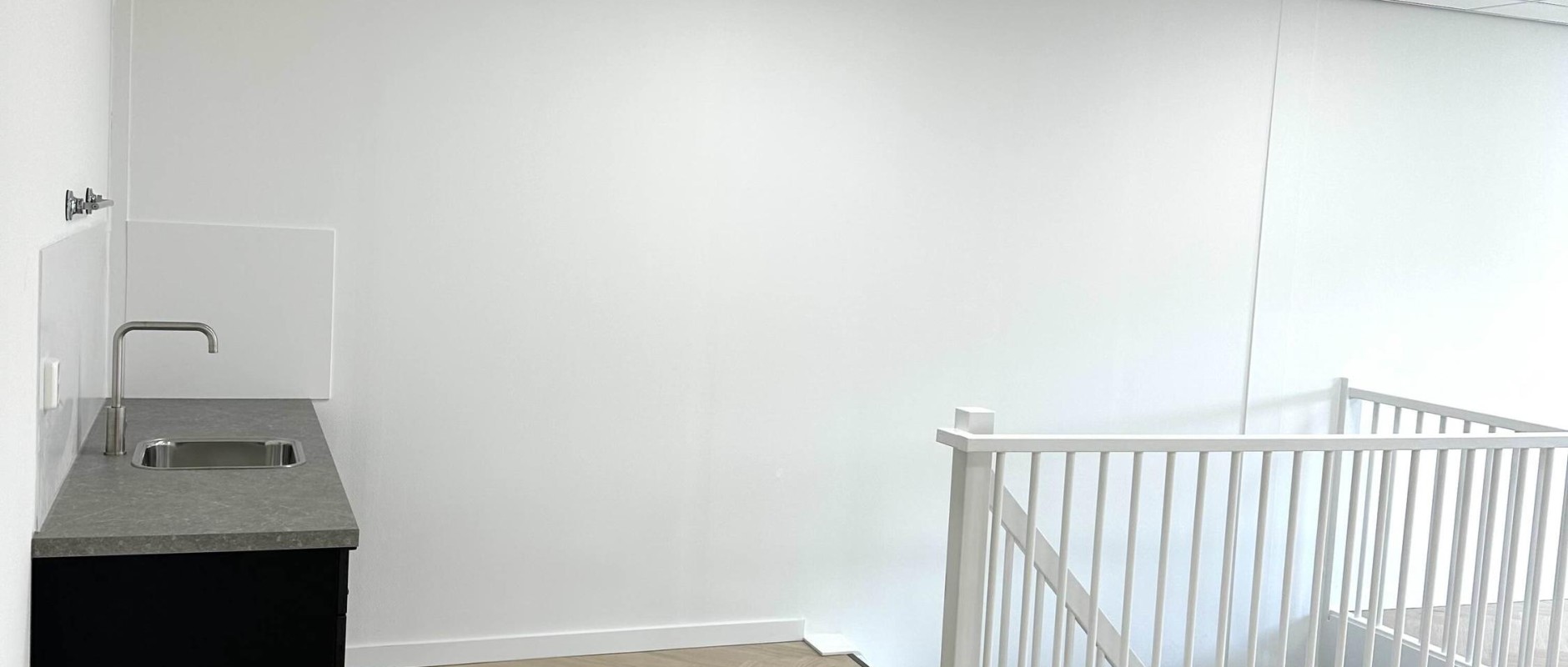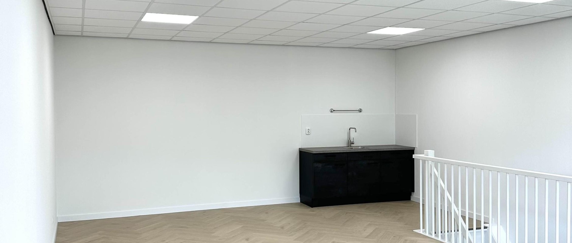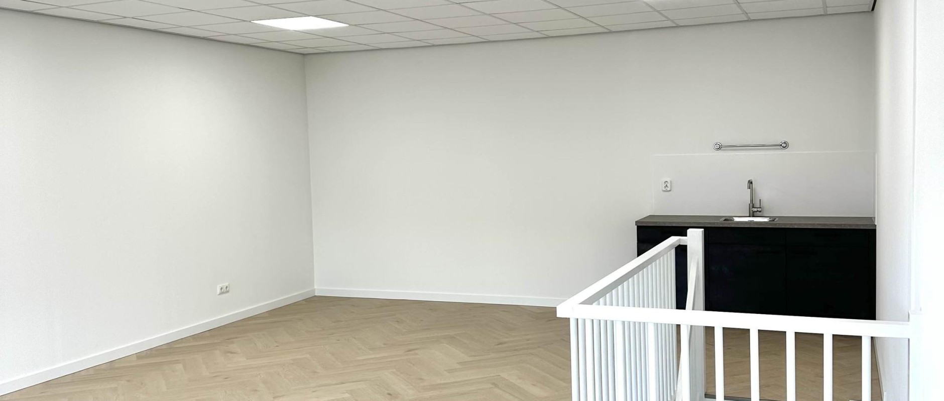 De unit heeft een bruto vloeroppervlak van 103m², waarvan de begane grond circa 51m² bedrijfsruimte biedt. Op de etage met betonvloer is een prachtige kantoorruimte gerealiseerd, welke tevens als bedrijfsruimte te gebruiken is.