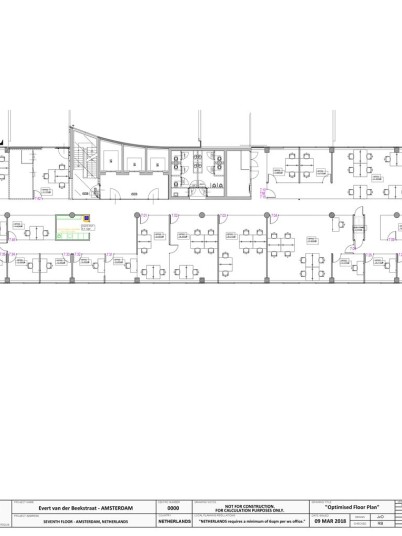 Totaal voor de verhuur is circa 350 m² beschikbaar en is gelegen op de 1e en 7e verdieping. Mogelijk te verdelen in units vanaf 15 m². Op de 1e verdieping bevinden zich tevens de business lounge en diverse vergaderruimtes.