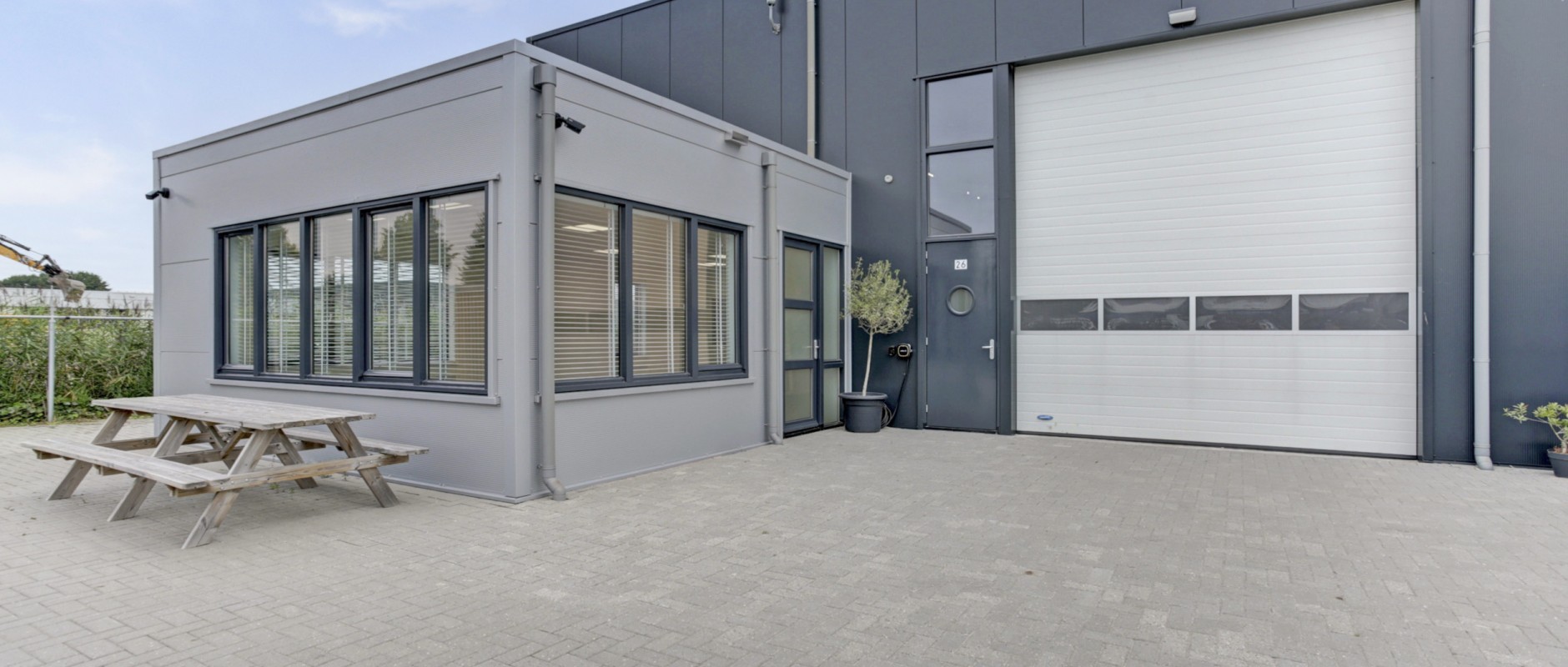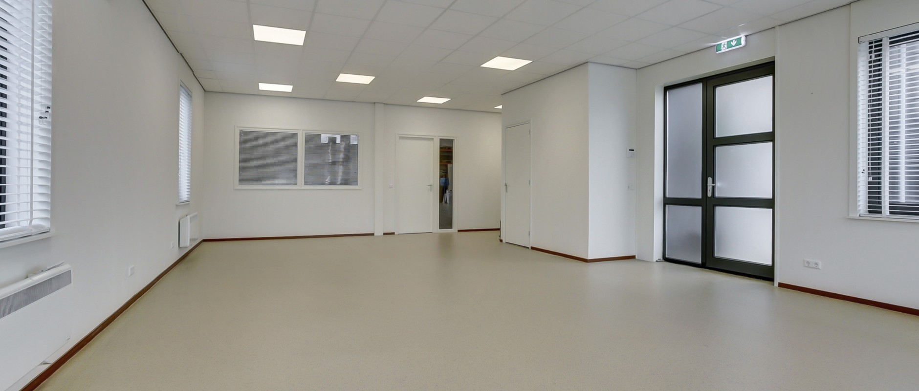 De kantoorruimte is middels een eigen entree aan de voorzijde van het pand bereikbaar. Deze kantoorruimte is geheel luxe afgewerkt met airconditioning, Ledverlichting, elektrische verwarming, een pantry en een toiletruimte. Vanuit de kantoorruimte geeft een loopdeur inpandig toegang tot de bedrijfshal. Een stalen trapopgang geeft toegang tot de bergzolder van 31,3m² boven het kantoor waar opstal van lichte materialen mogelijk is.