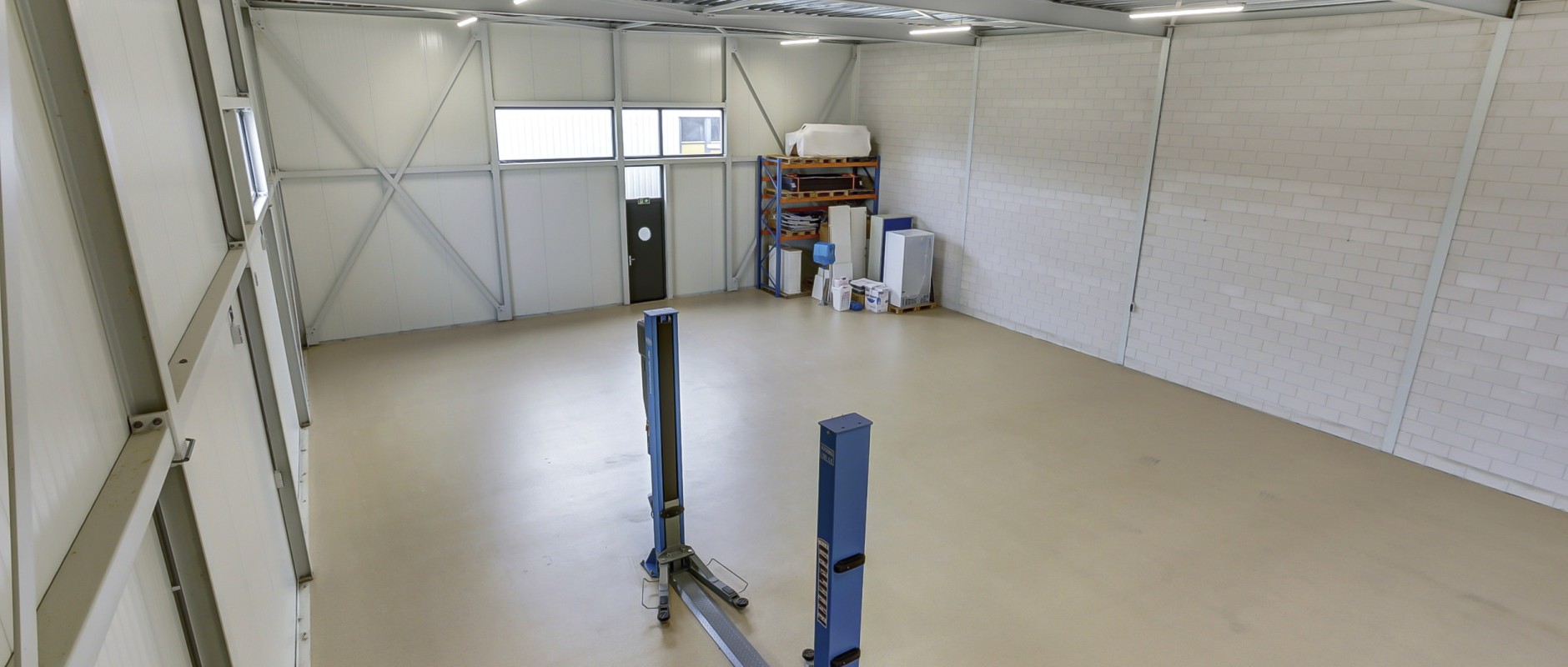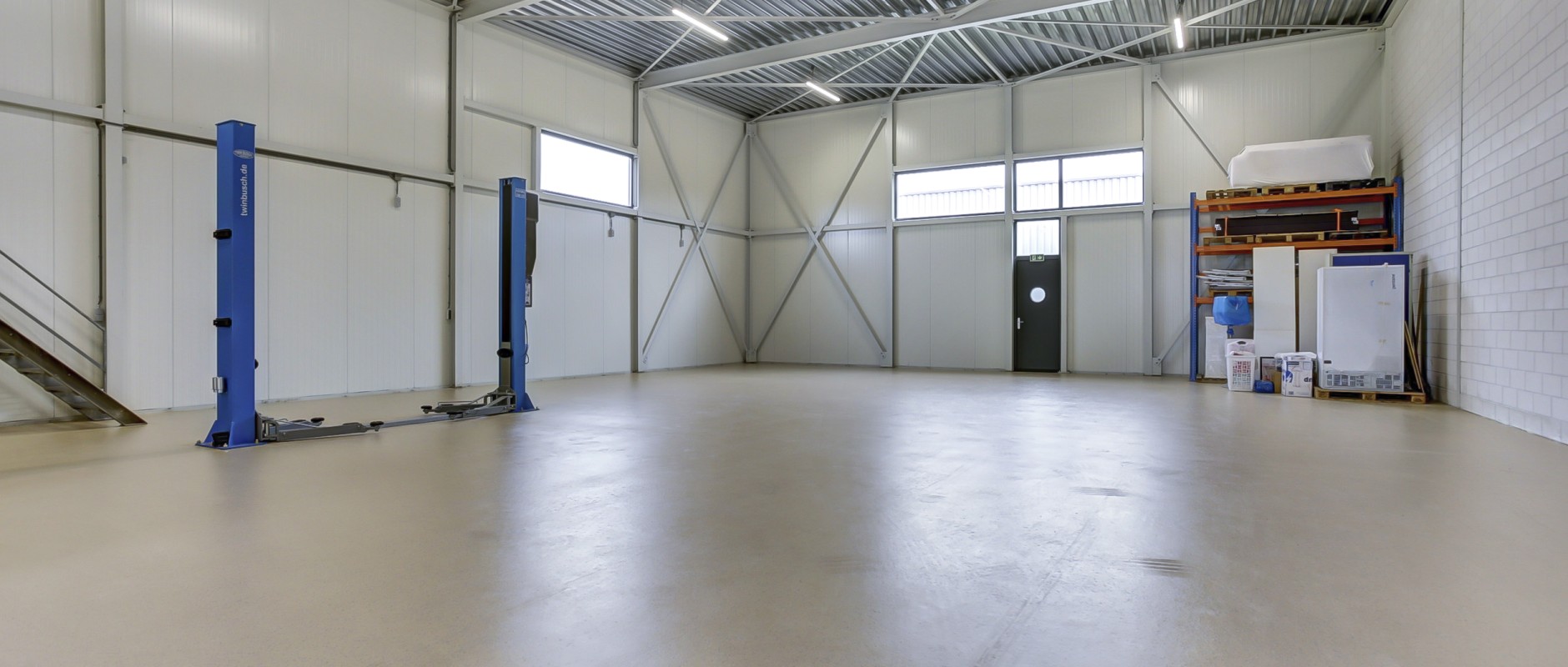 De bedrijfshal heeft een vloeroppervlak van ca. 278m² en een hoogte van 6,0.m. De bedrijfshal beschikt over een vloeistofdichte betonvloer met een draagvermogen van 1.