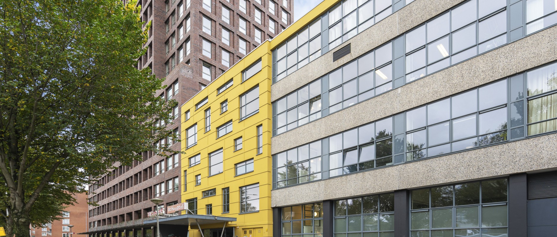 Former technical school from the 1960s, located on Jan Evertsenstraat, which was saved from demolition in 2003–2004. The property has a total area of approximately 5,892 m² and includes a shared parking garage. It has been completely renovated and is very well maintained. It has now been transformed into a multi-tenant building housing various companies such as Studio Act 2 Act, Rudy Uytenhaak Architectenbureau, Minddistrict, Advertising and Consultancy Agency A Fact B.V., and Perspectief GZ. Next to the building, you can walk through the newly designed park to Postjesweg metro station.