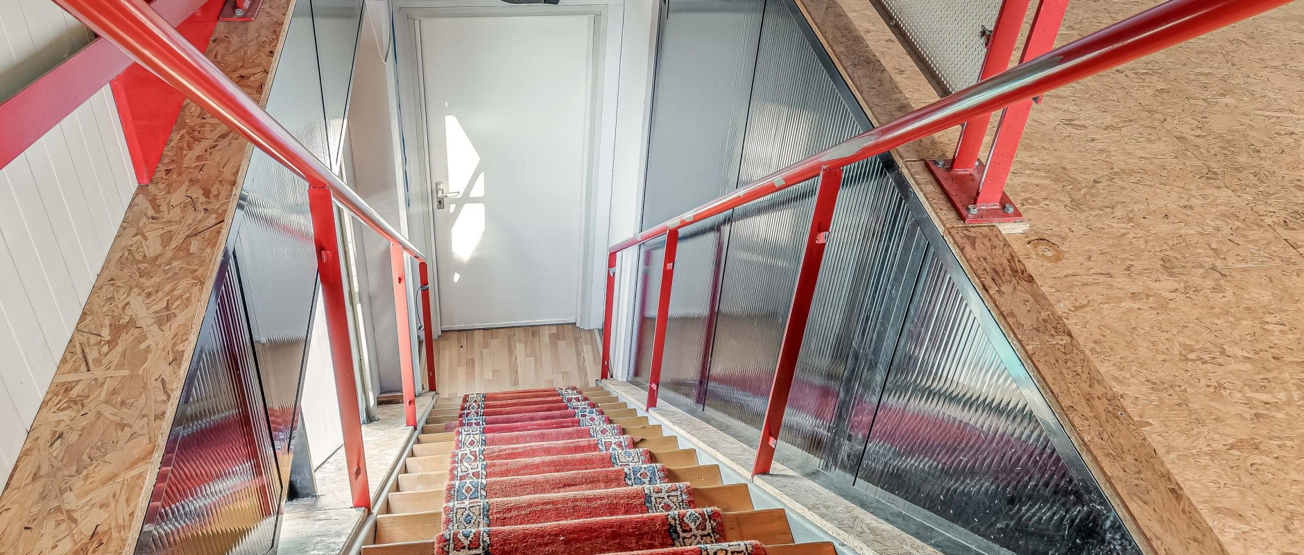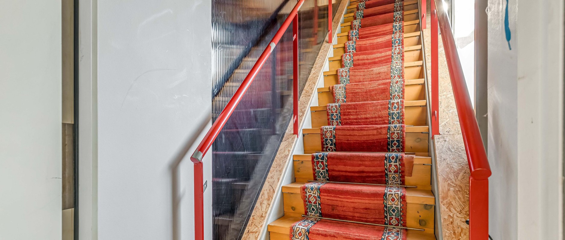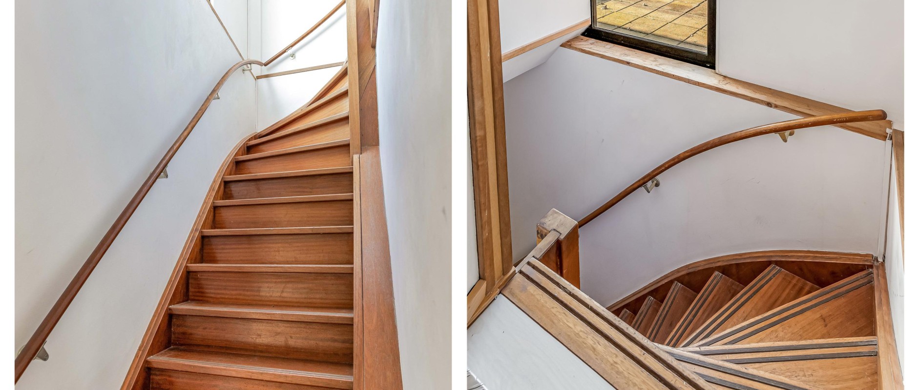Via de vaste trap bereikt u de showroom op de eerste verdieping, met een totale oppervlakte van circa 102 m².