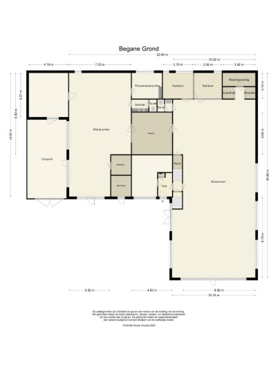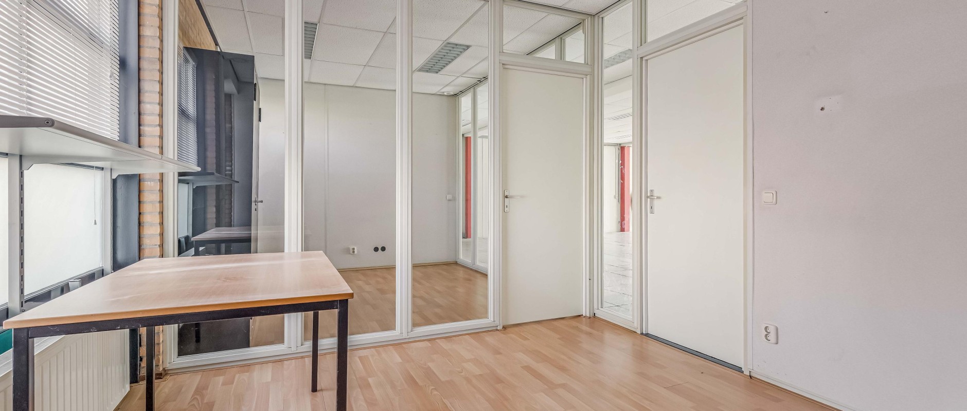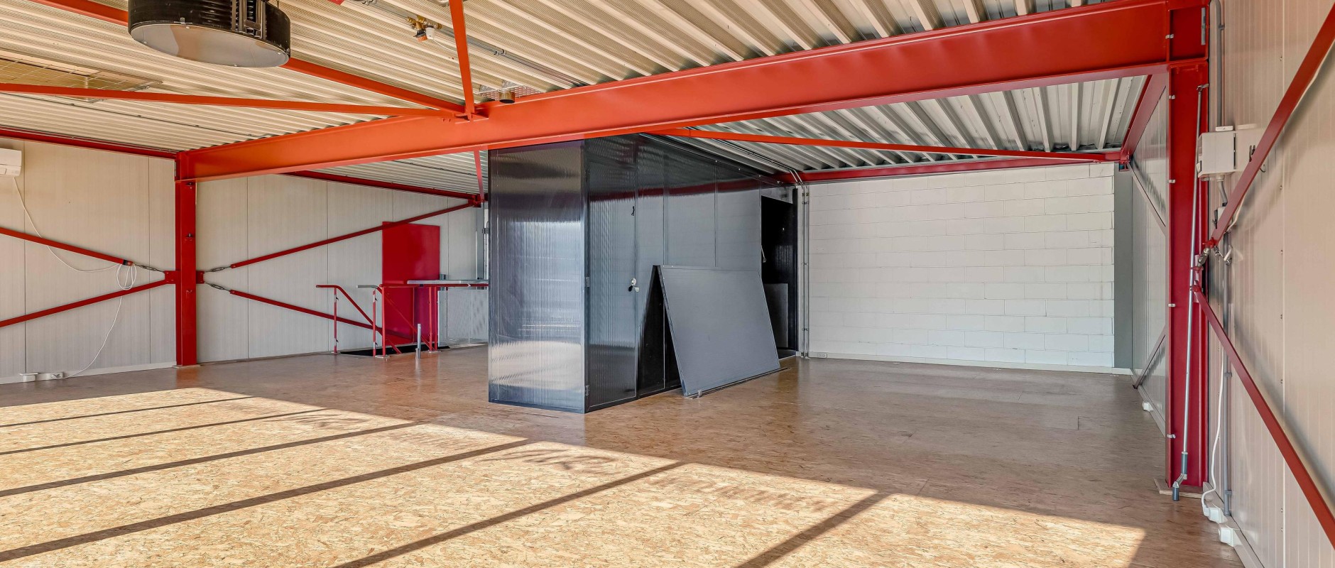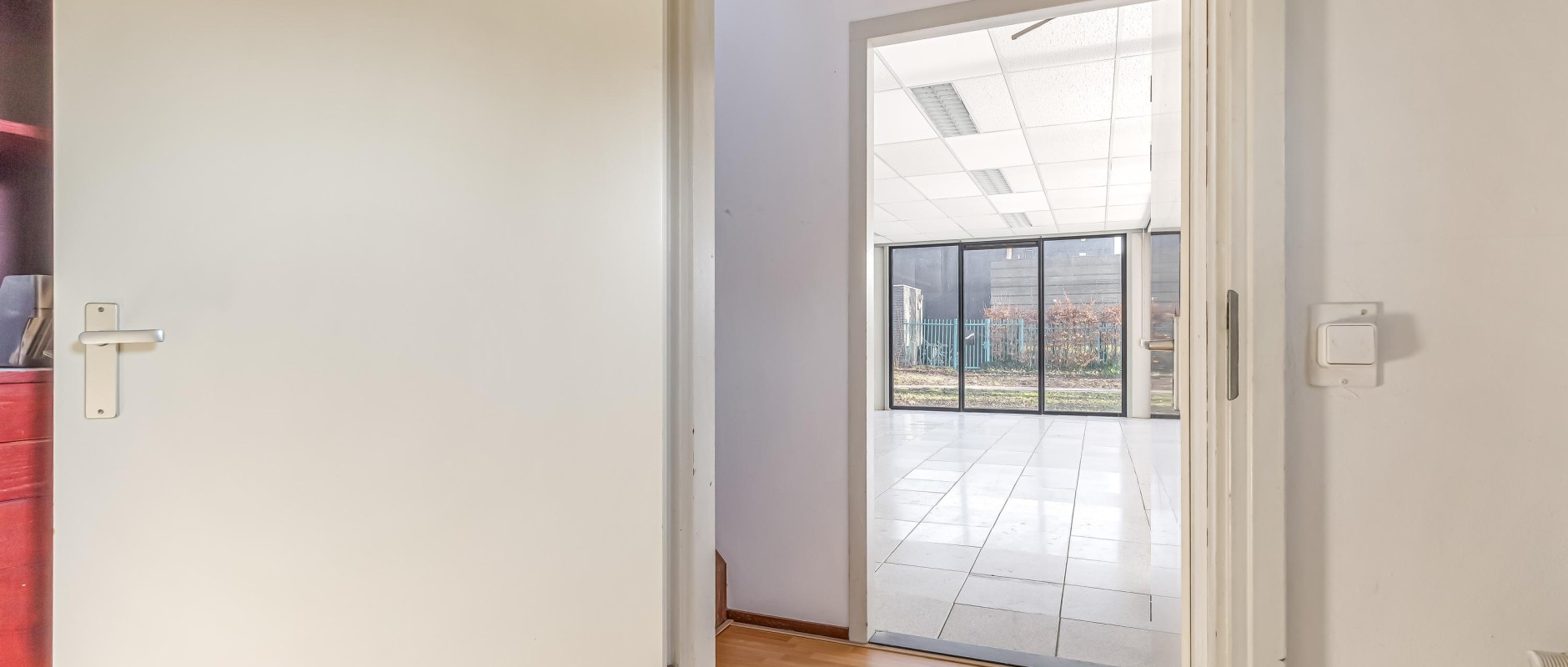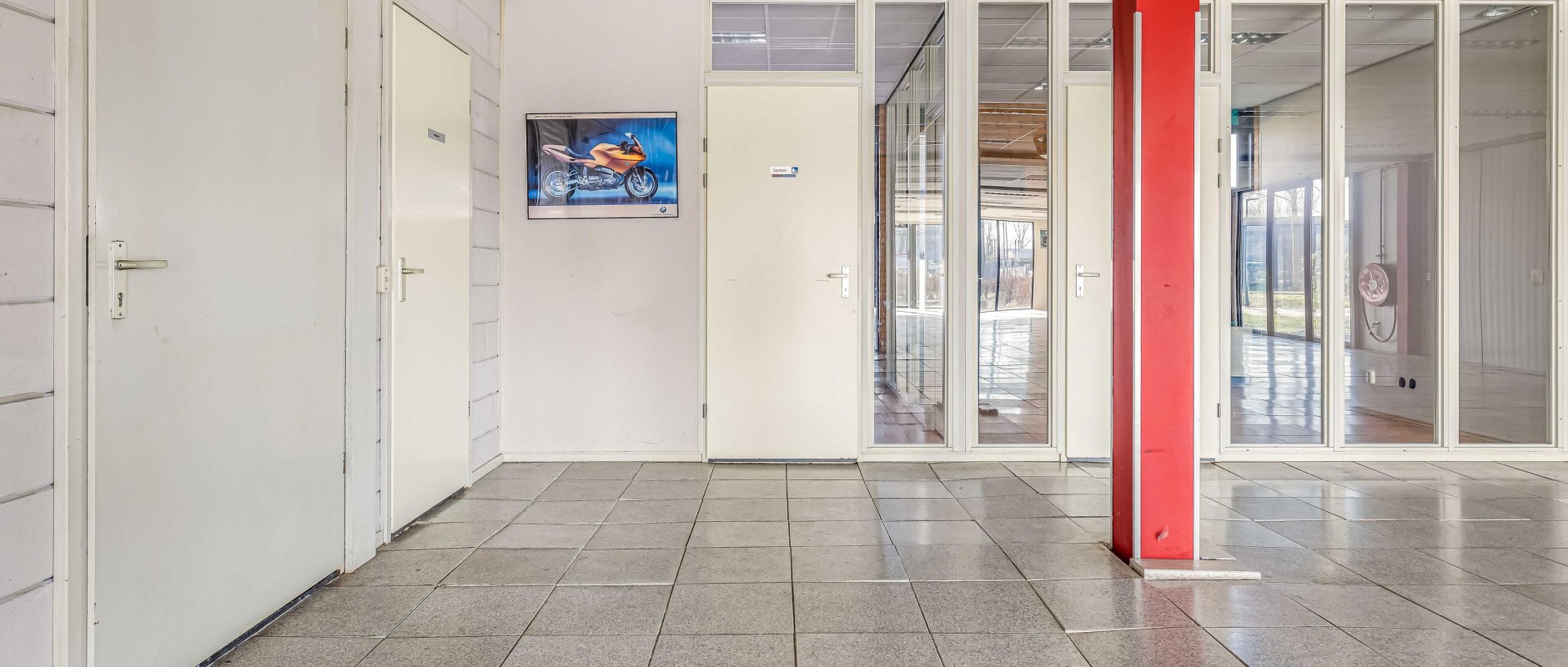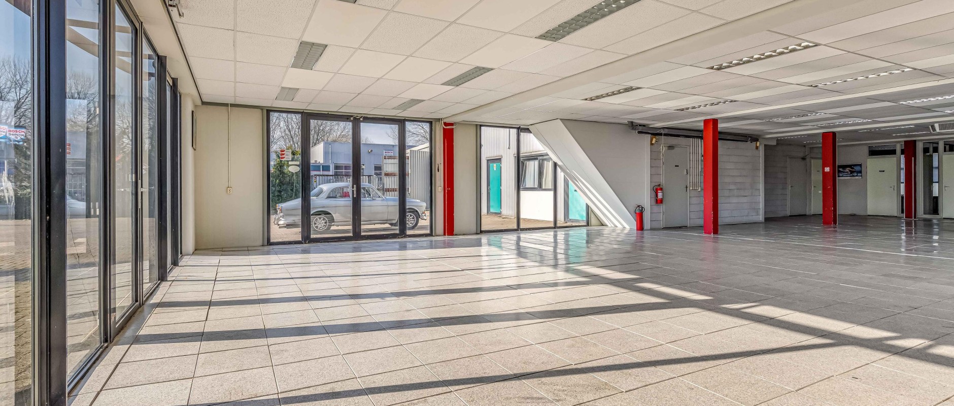 Entree, hal met toegang tot de meterkast, trap naar de verdieping en een deur naar de showroom. Via de showroom bereikt u verschillende kantoorruimtes van respectievelijk 10 m² en 12 m² en het magazijn. De werkruimte van circa 112 m² biedt veel mogelijkheden voor uiteenlopende bedrijfsactiviteiten. Vanuit de werkruimte is er toegang tot diverse opslagruimtes, personeelsruimte, toiletten en een carport.