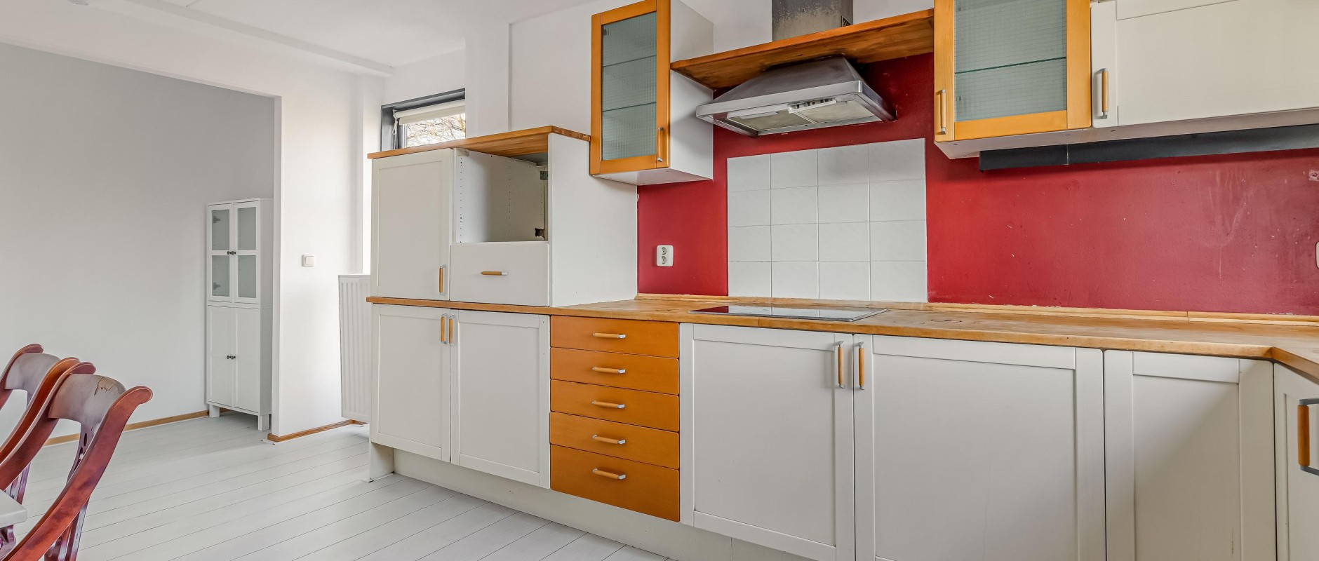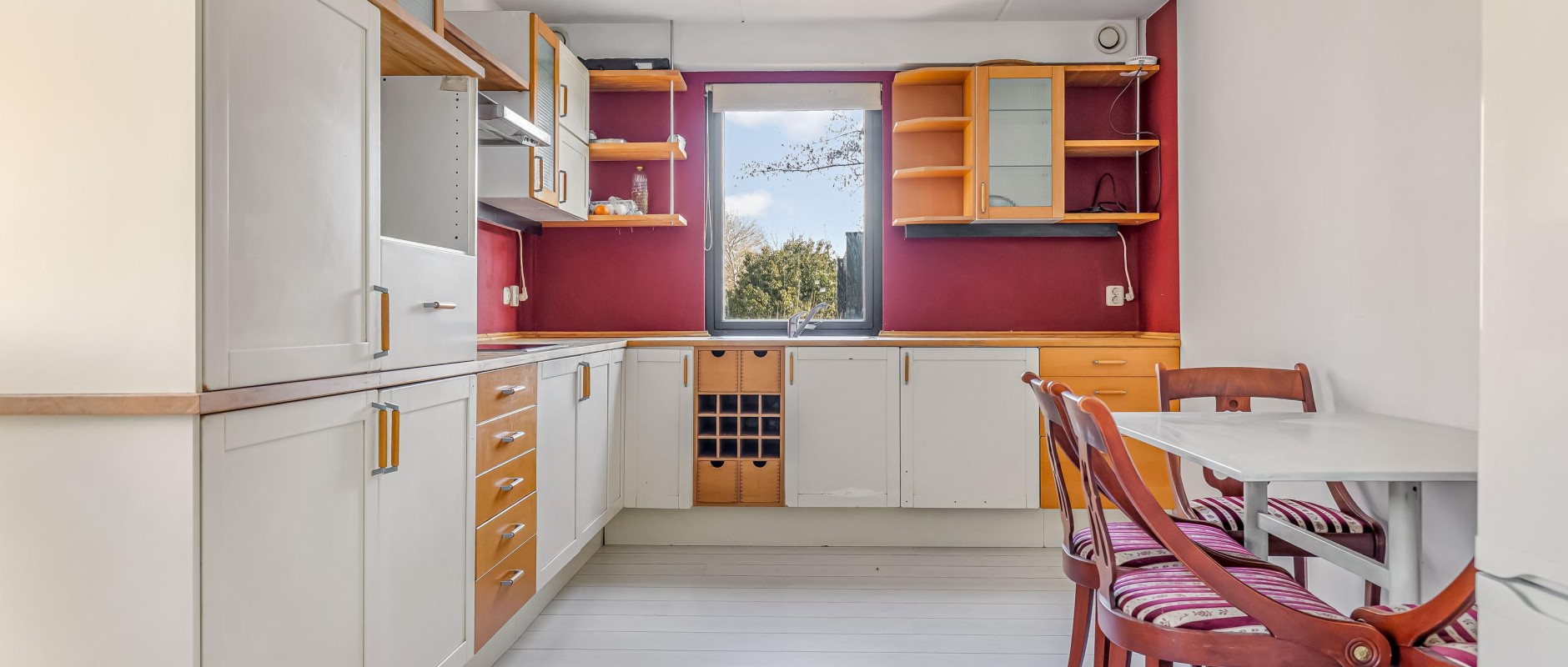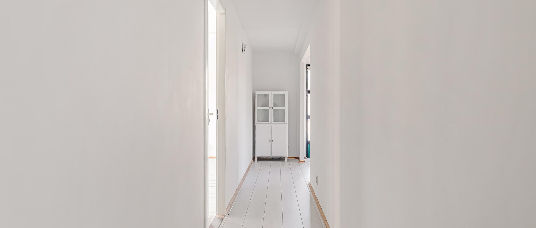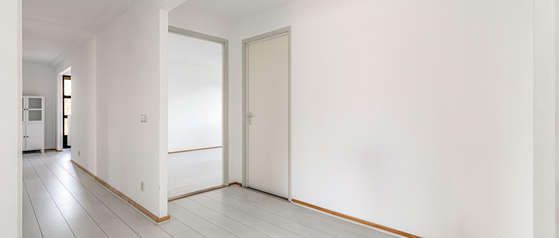 Overloop met toegang tot een berging, een keuken, vijf in grootte variërende (slaap)kamers en een badkamer.