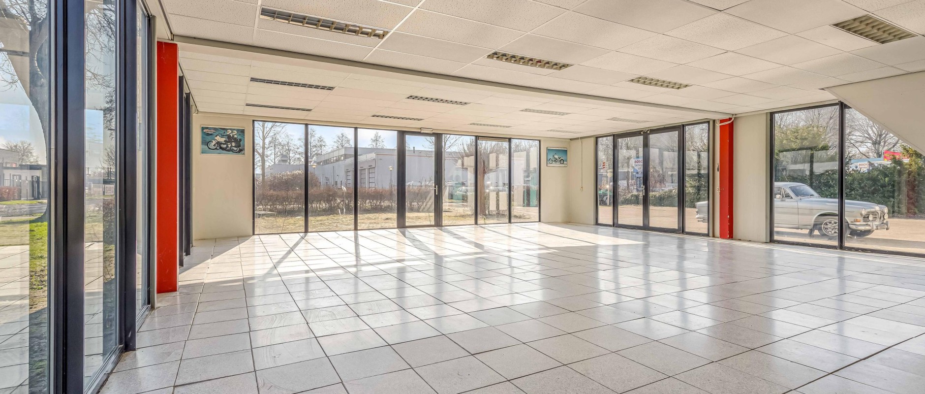 Deze ruime bedrijfsruimte van ongeveer 468 m² op de begane grond biedt de ideale combinatie van showroom, kantoorruimtes, opslag en werkplekken.