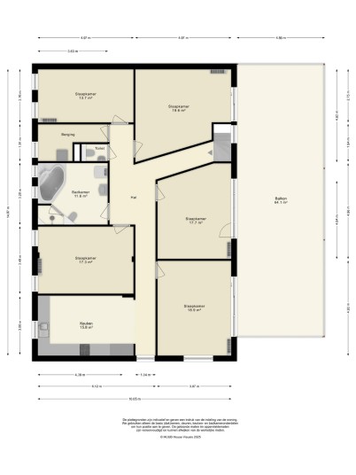 Vanuit twee van de de (slaap)kamer heeft u toegang tot het ruime balkon van maar liefst circa 64 m².