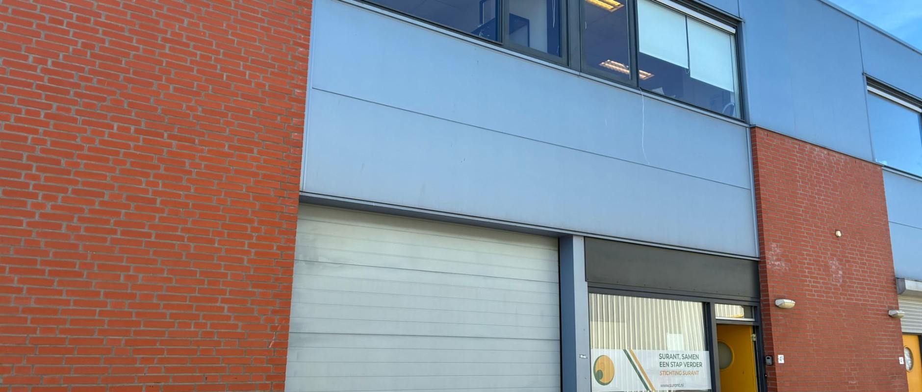 Circa 75 m² bedrijfsruimte op de begane grond en circa 75 m² kantoorruimte op de verdieping.