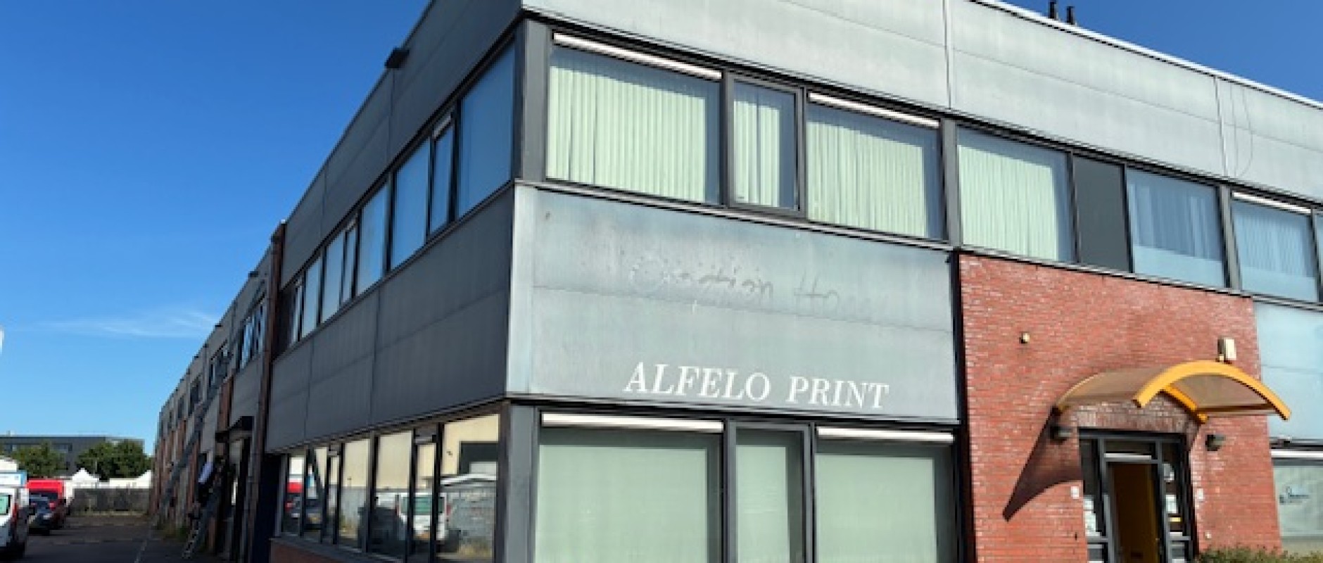 Circa 119 m² bedrijfsruimte op de begane grond en circa 100 m² kantoorruimte op de verdieping.