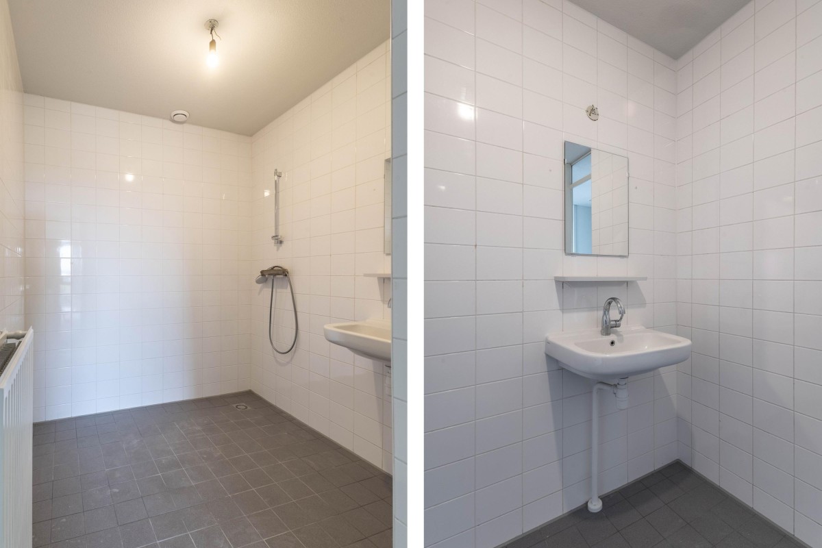 From the shared entrance, take the elevator to the sixth and top floor, where the apartment is located. Upon entering the hallway, you have access to several rooms. On the gallery side are the two bedrooms. The bathroom is spacious and equipped with a shower and washbasin.
