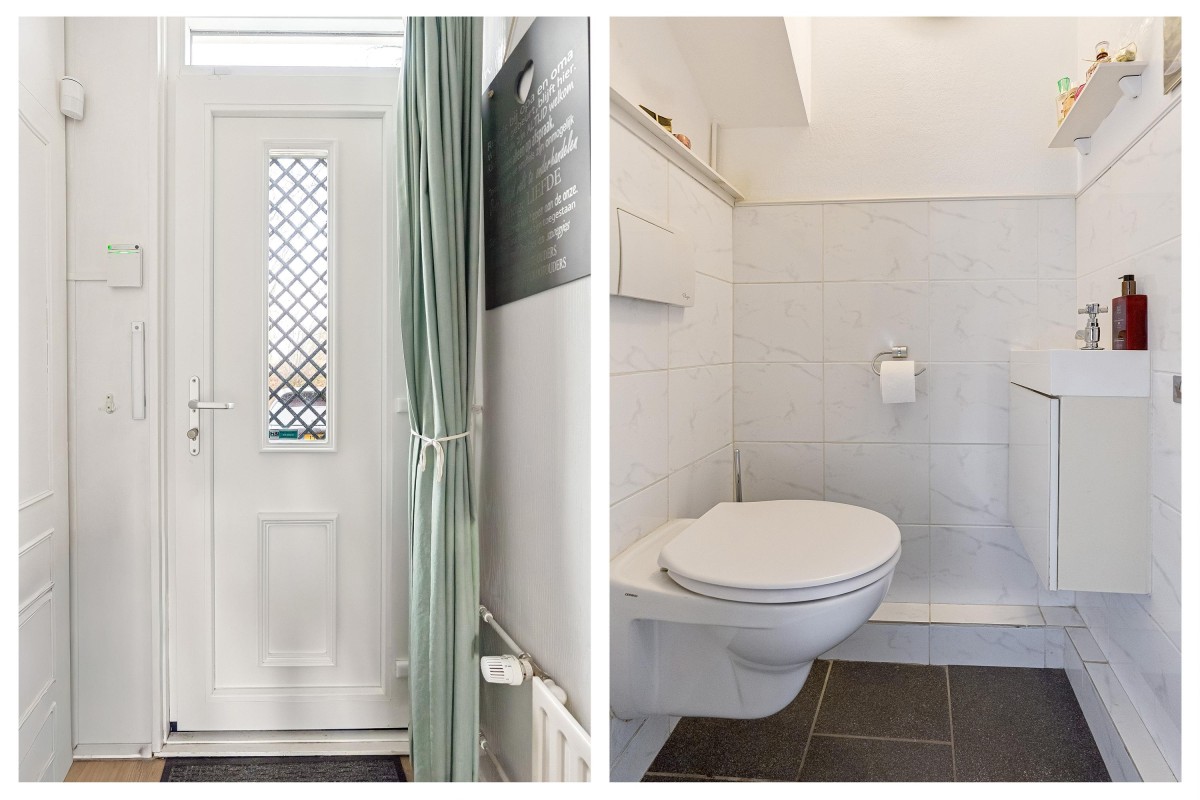 Lees verderIn the hall, you’ll find the meter cupboard and a guest toilet with a hand basin.