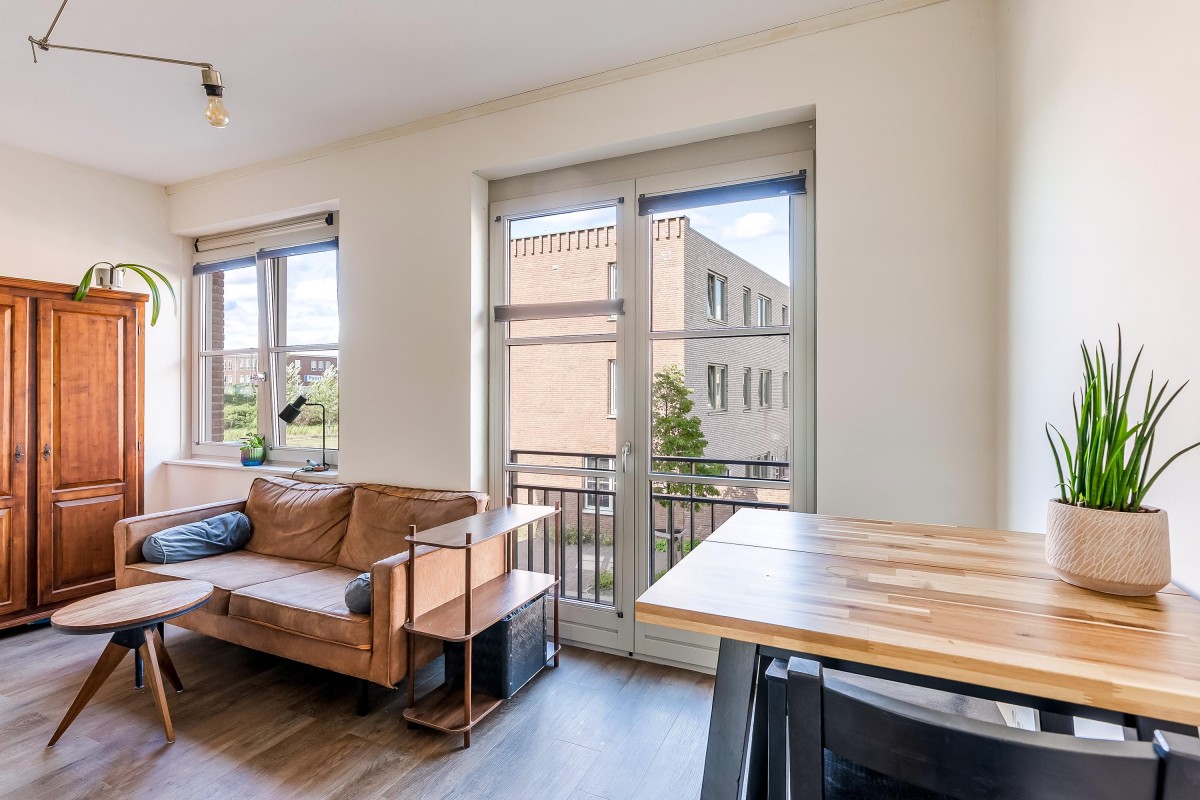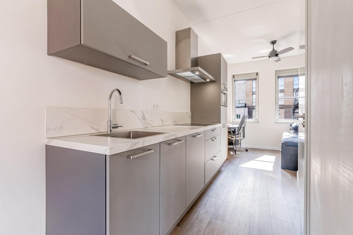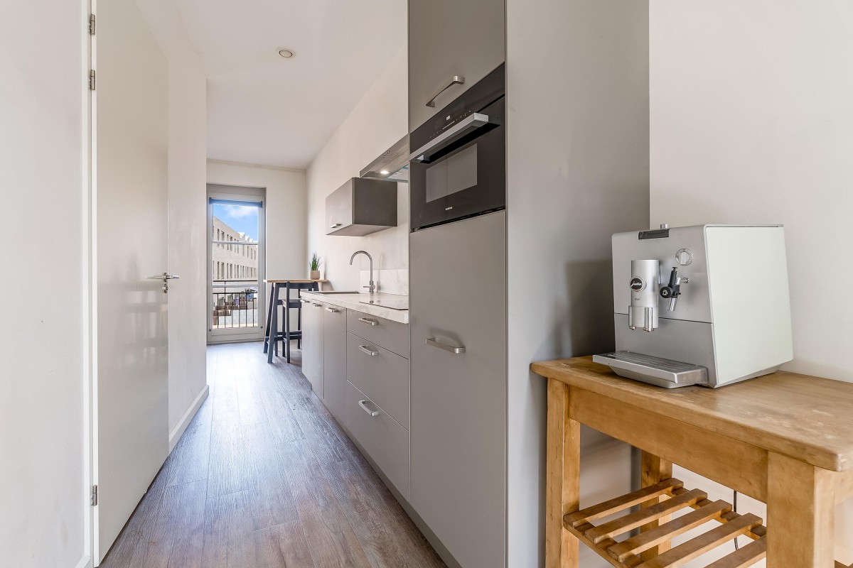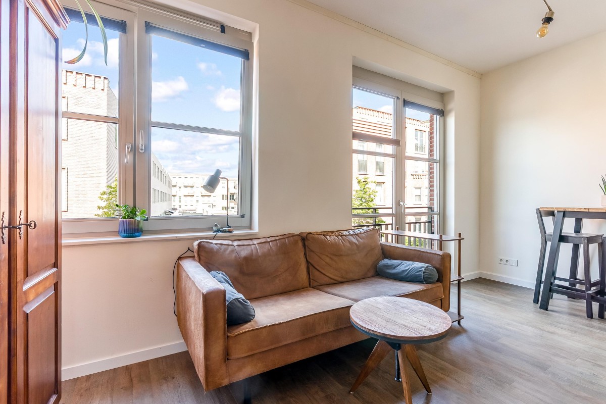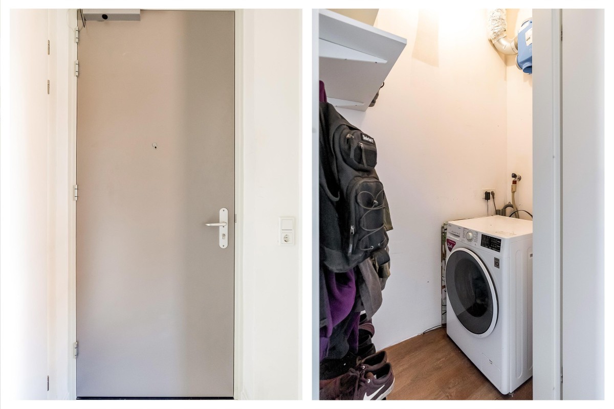 Entree/hal met meterkast, berging voorzien van wasmachine aansluiting en toegang tot woonkamer. De lichte woonkamer is voorzien van grote raampartijen en een Frans balkon. Aan de achterzijde tref je de ruime open slaapkamer welke eenvoudig afsluitbaar gemaakt kan worden. Tussen de woon- en slaapkamer bevindt zich de keuken welk is voorzien van diverse inbouwapparaten te weten: vaatwasser, combi magnetron, kookplaat, afzuigkap en koelkast. De badkamer is volledig betegeld en voorzien van een inloopdouche, toilet en een wastafel met meubel. De gehele woning voorzien van een mooi PVC-vloer in combinatie met vloerverwarming.