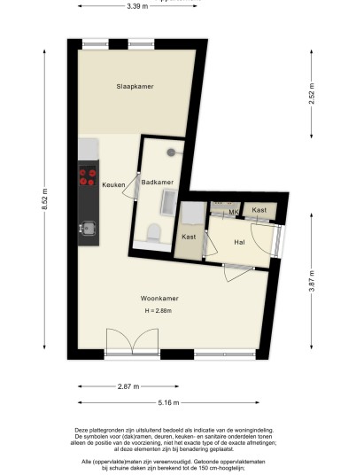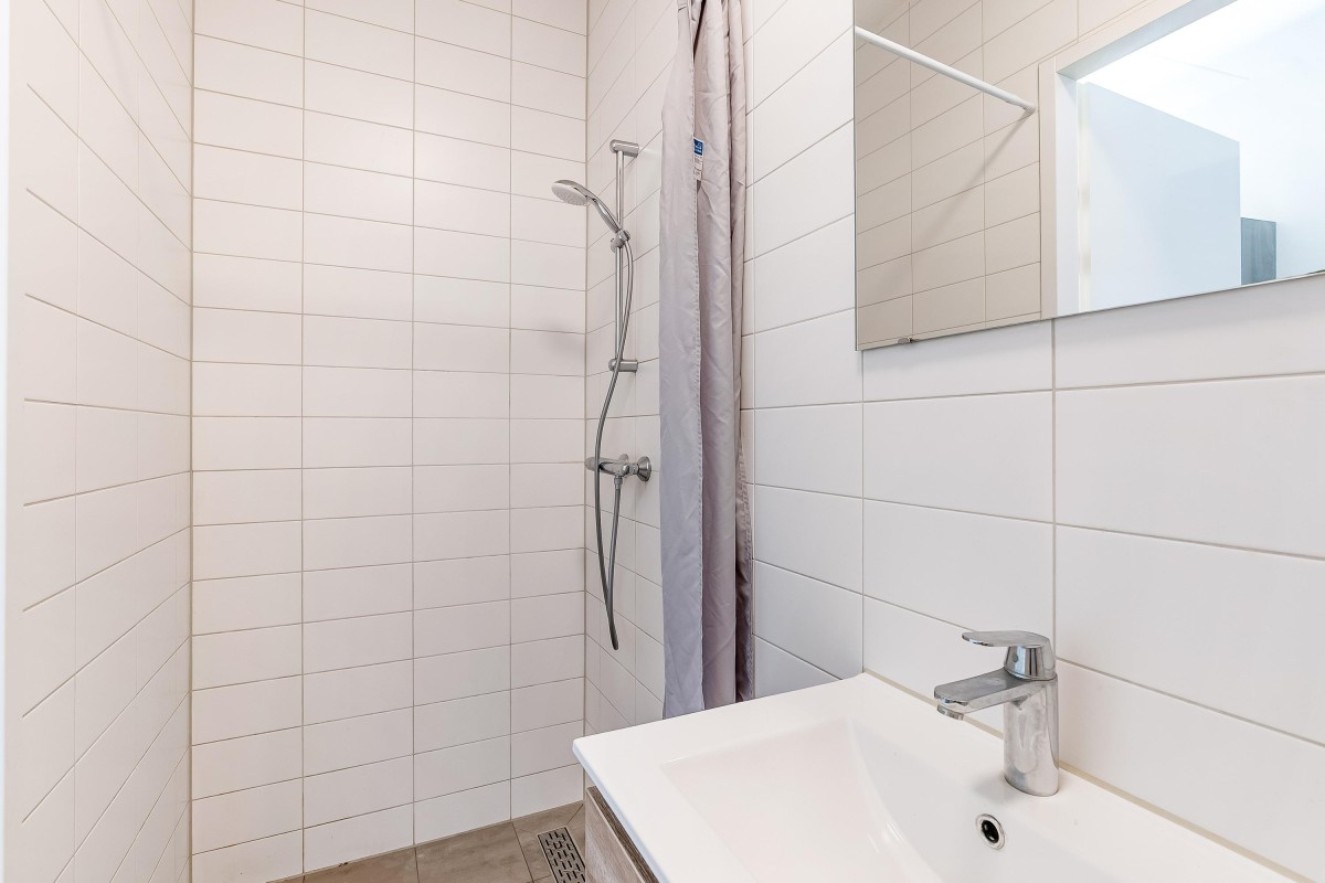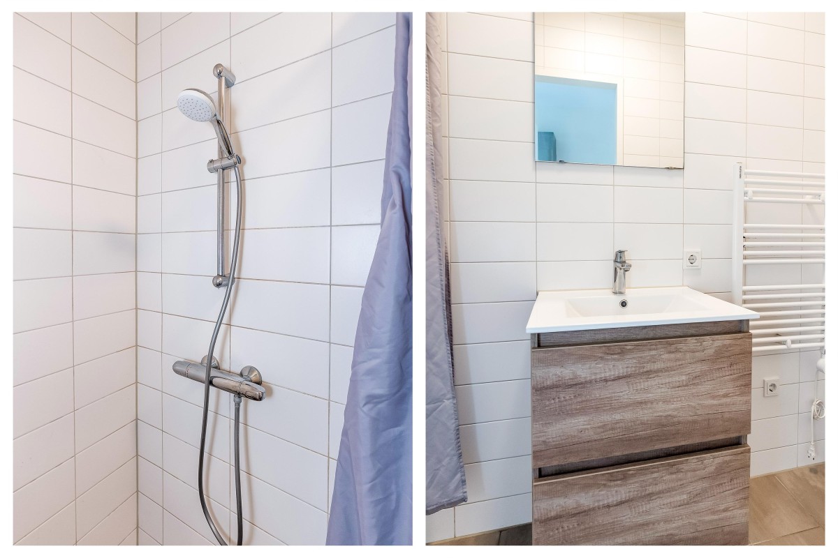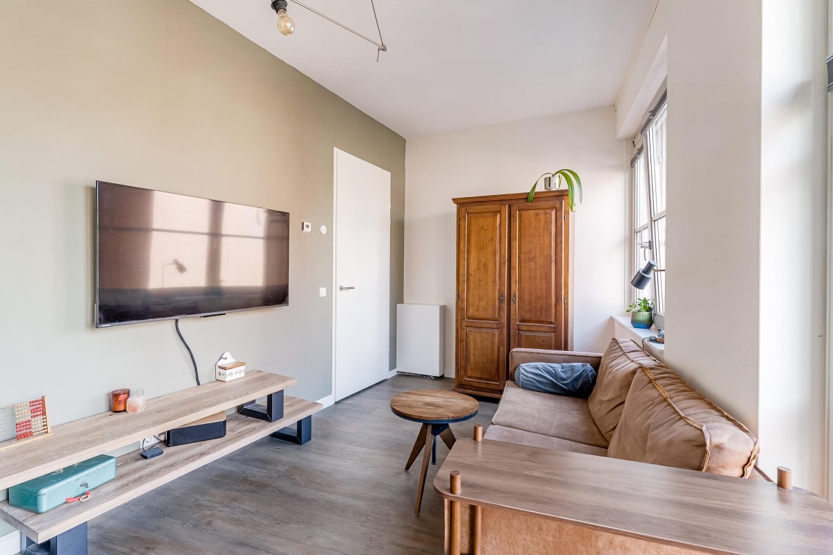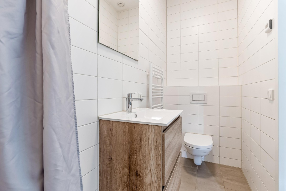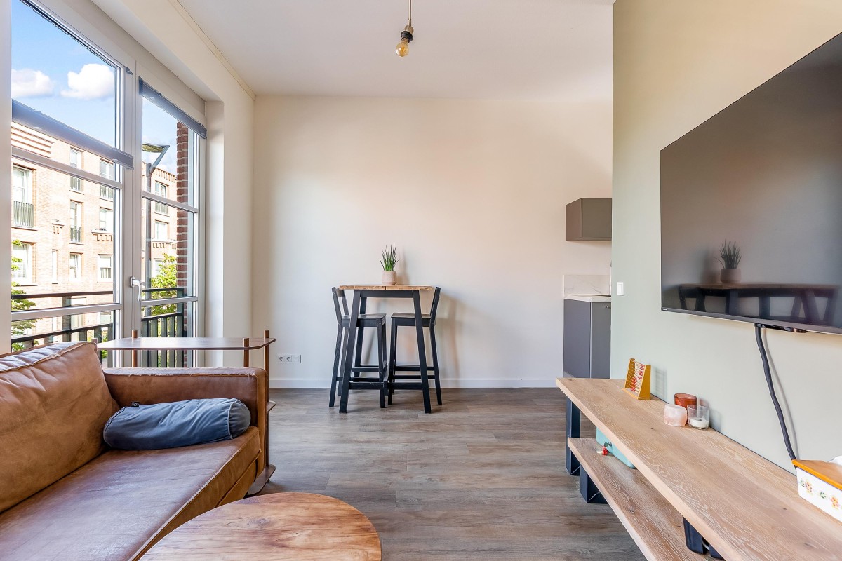 Entree/hal met meterkast, berging voorzien van wasmachine aansluiting en toegang tot woonkamer. De lichte woonkamer is voorzien van grote raampartijen en een Frans balkon. Aan de achterzijde tref je de ruime open slaapkamer welke eenvoudig afsluitbaar gemaakt kan worden. Tussen de woon- en slaapkamer bevindt zich de keuken welk is voorzien van diverse inbouwapparaten te weten: vaatwasser, combi magnetron, kookplaat, afzuigkap en koelkast. De badkamer is volledig betegeld en voorzien van een inloopdouche, toilet en een wastafel met meubel. De gehele woning voorzien van een mooi PVC-vloer in combinatie met vloerverwarming.