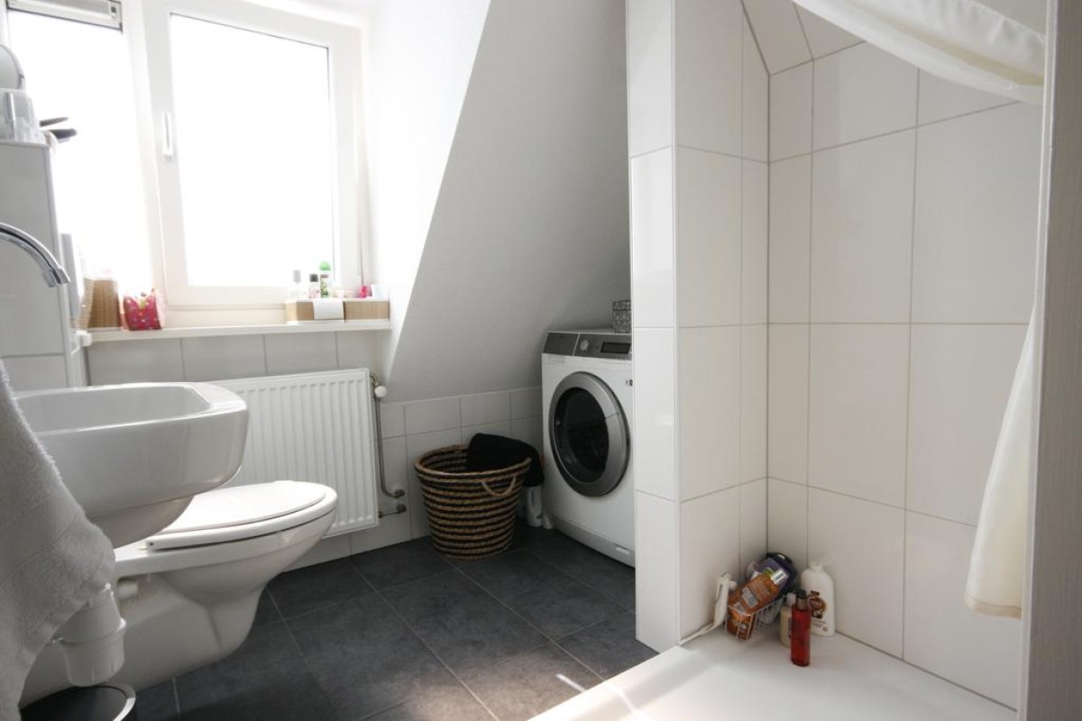 Slaapkamer is aan de voorzijde gesitueerd en de badkamer met wastafel, douche en aansluiting voor de wasmachine.