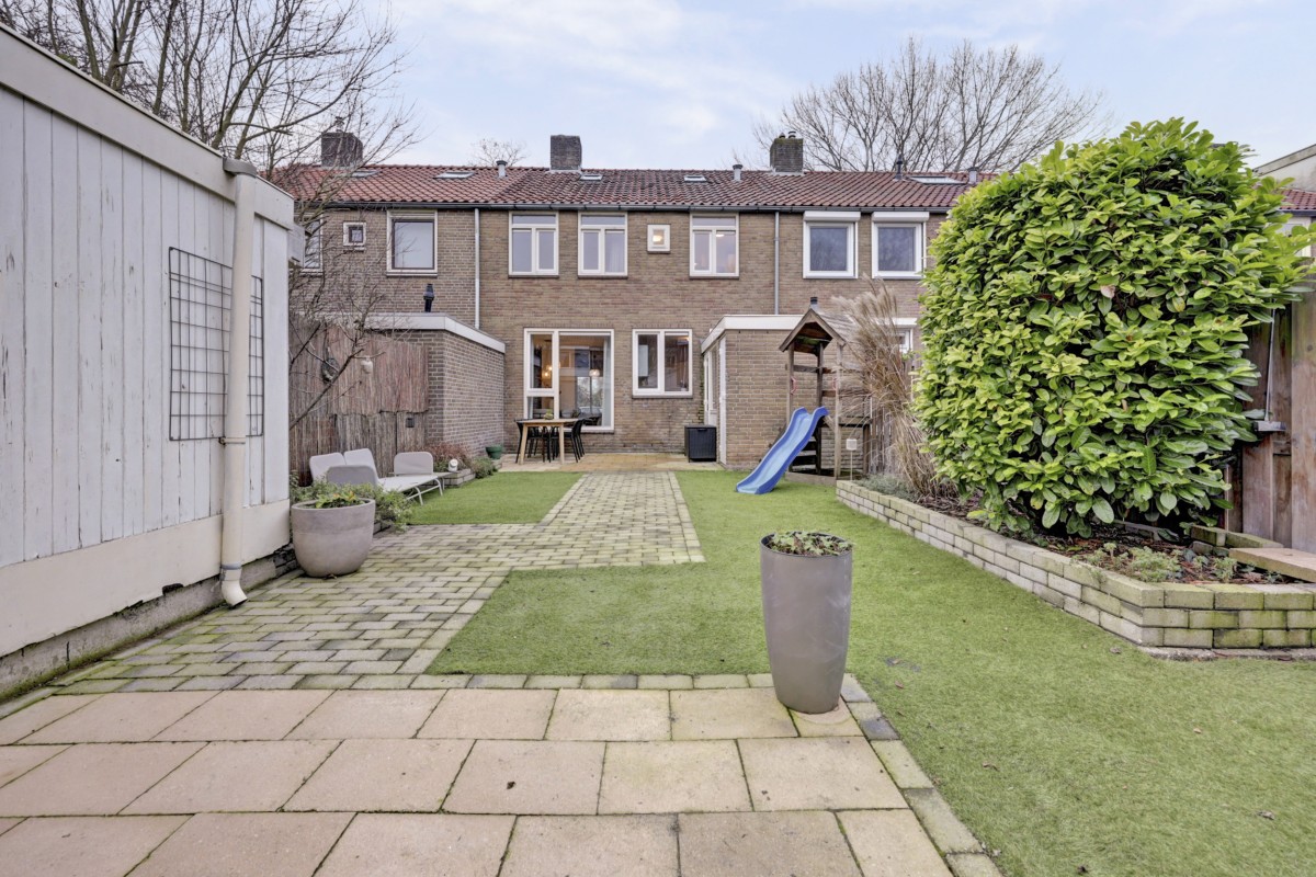Deze riante tussenwoning is nabij het winkelcentrum van Dronten gelegen in een groene woonwijk met brede lanen met veel groenvoorzieningen en parkeergelegenheid. Het perceel van 170 m² eigen grond biedt een diepe tuin op het zonnige westen. De woning is voorzien van een aangebouwde bijkeuken en de achtertuin beschikt over een achterom en een geschakelde houten berging. Verder is de woning voorzien van een sfeervolle indeling, 5 slaapkamers, halfopen keuken en veel opbergruimte. Winkels, scholen en het gezondheidscentrum zijn nabij gelegen.