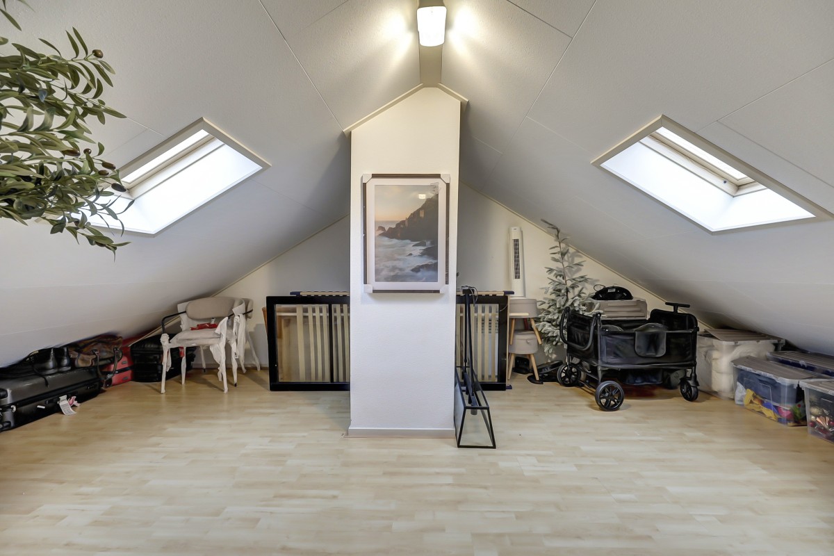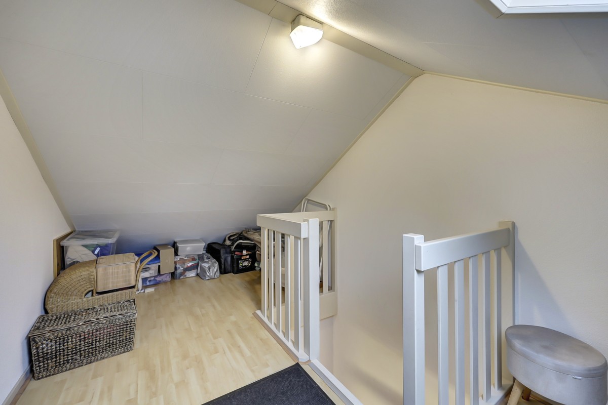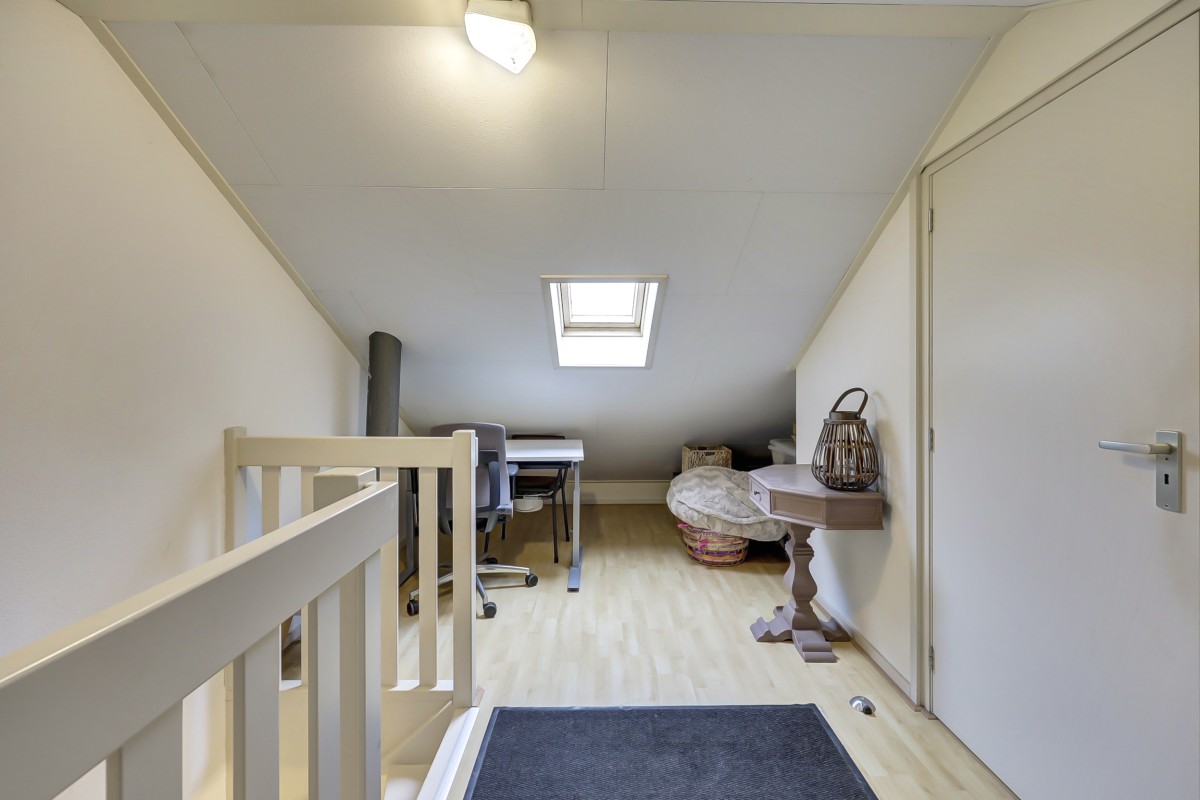 Tweede verdieping: middels een vaste trap is de voorzolder bereikbaar waar de nodige bergruimte geboden wordt. Deze verdieping beschikt tevens over een 5e slaapkamer met 2 dakramen.